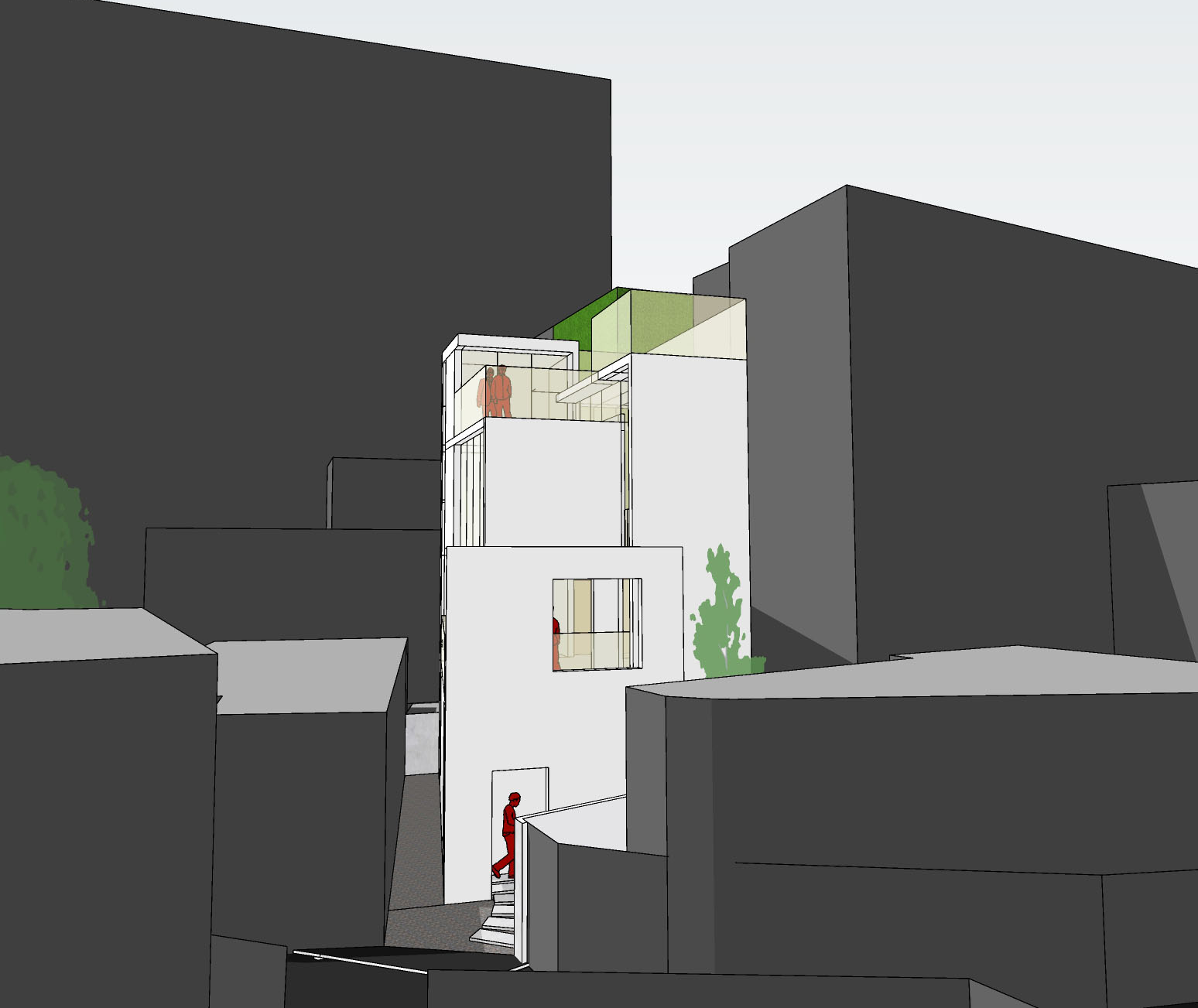H카페는 한층에 10평 남짓한 공간이 3개 층으로 구성된 작은 카페이다. 커피와 문화를 담고 있는 최근 대형화된 카페의 자유로움과는 다르게 집(주택)의 크기로 구성된 소형 카페가 될 것이다. 눈에 잘 띄는 대로변에 위치하거나 교외에 나가야 되는 곳이 아닌 "걸어서 또는 버스를 타서도 쉽게 찾을 수 있는 일상과 가까운 곳" 에서 조금은 숨겨진 도심지 주거지역에 조용하고 편안한 공간을 만들려고 한다.