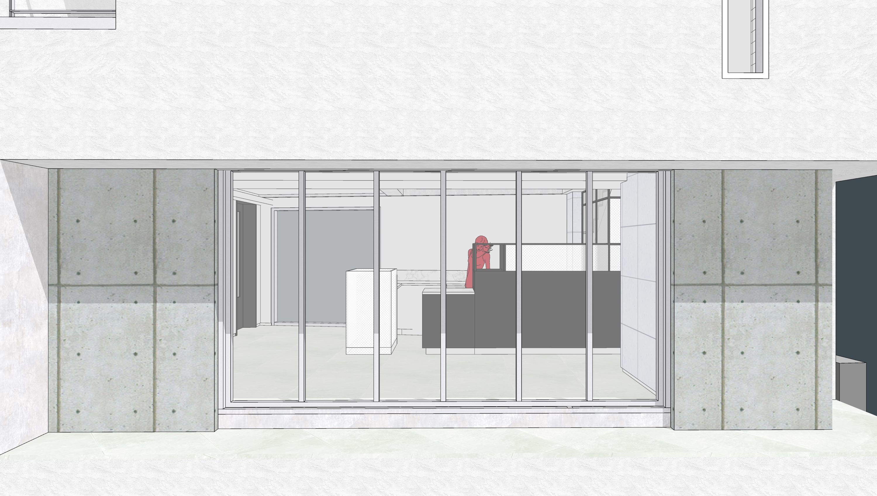 입구는 개구부의 위치를 다양화하여 카페의 영역과 카페 외부의 경계에서 호기심을 유발하고, 입구에서 카페의 주출입문까지 가급적 늦게도 달 할 수 있게 하고자 한다. 실내의 분위기는 건축주의 의견을 최대한 반영하여 블랙과 화이트를 사용하여 공간의 분위기를 만들었다.