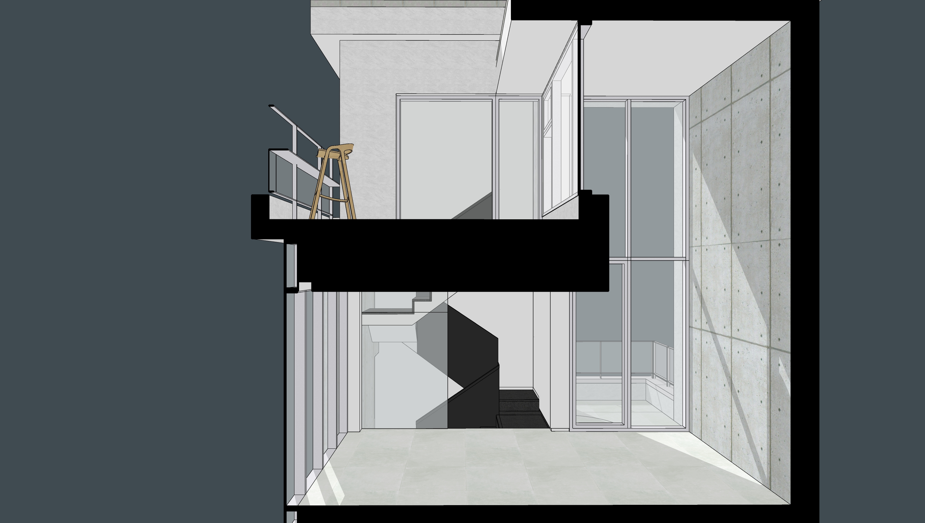 위층으로 올라갈수록 면적이 작아지고, 그러면서 자연스럽게 생기는 외부공간 테라스는 실내 매장의 연속적인 공간과 분위기를 연출하고자 한다. 최상층은 건물의 높이로부터 자유롭다. 층고를 다르게 하고, 방위별로 스며드는 햇빛에 의해 작지만 매 순간 다른 분위기를 만들어 낼 것이라고 상상한다.