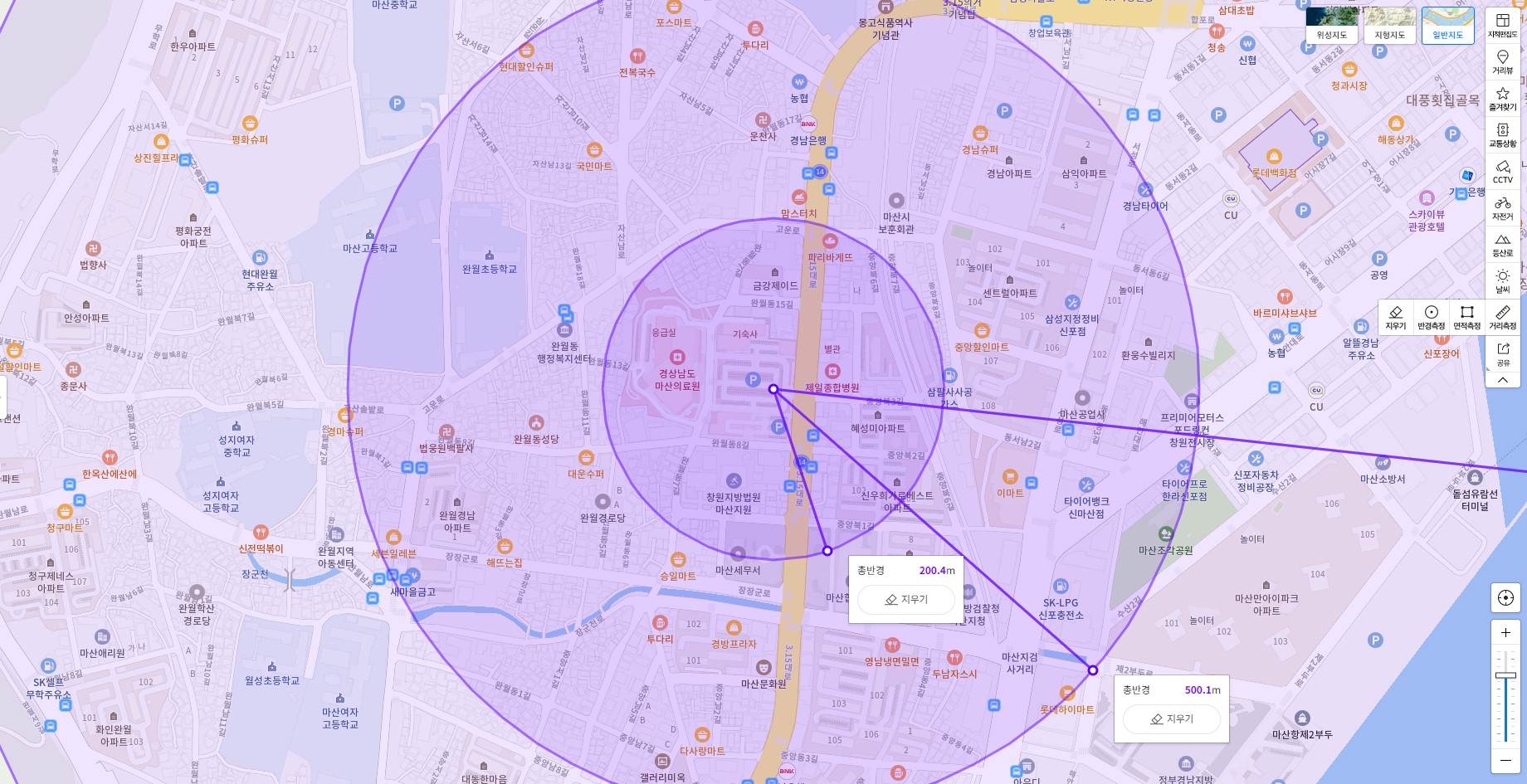2) 편의시설은 약국, 마트, 편의점, 식당, 의료원, 학원, 은행, 자전거 방, 카페, 제과점 등 다양한 시설을 말할 수 있는데, 집에서 나와 100미터 앞, 도보 1분 거리에 3.15대로 가 있다. 3.15대로는 구마산을 기준으로 설명을 한다면, 경남대 앞 오거리에서 마창의 경계점인 소계광장사거리(창원역 앞)까지의 대로를 말한다. 즉, 마산의 시가지를 관통하는 가장 중요한 도로이다. 상업지역으로 다양한 상권이 형성되어 있어 편의시설이 잘되어 있다는 것은 당연한 사실!!!