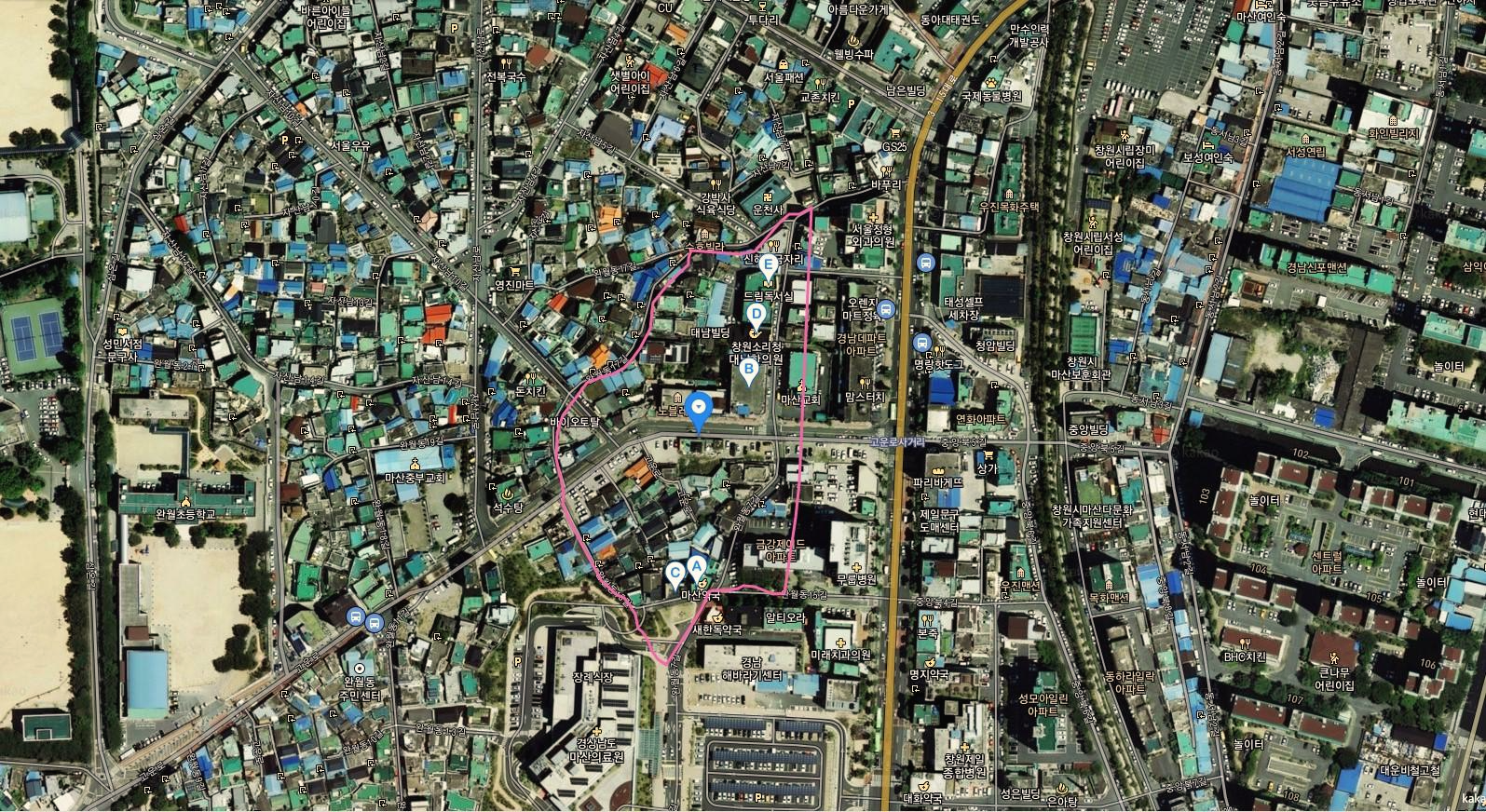 작은집 또는 작은땅을 찾아서 여러 부동산중개사무실을 방문하였다. 부동산 재테크(?)는 투자가치가 작으면 인터넷상에서 찾기가 쉽지 않다. 집주인도 내놓기가 망설여지고, 그것을 중개하는 사람도 팔기가 망설여지고, 그걸 찾는 사람은 잘 없으니... 발품을 팔아야겠지요. 가치가 저평가되는 것은 직접 찾아다녀야 한다. 그리고 눈에 잘 보이지도 않고, 숨겨져 있다. 그러다 대지면적이 20평이 조금 되지 않는 단독주택을 만나게 되었다. 구도심과 어우러지는 외관과 건폐율이 꽉 찬 이층 주택이었고, 23년 정도 전에 지어졌는데, 그동안 도시도 변하고, 주변 환경도 변하였으니 이 건물의 주변을 조사해보려 한다.