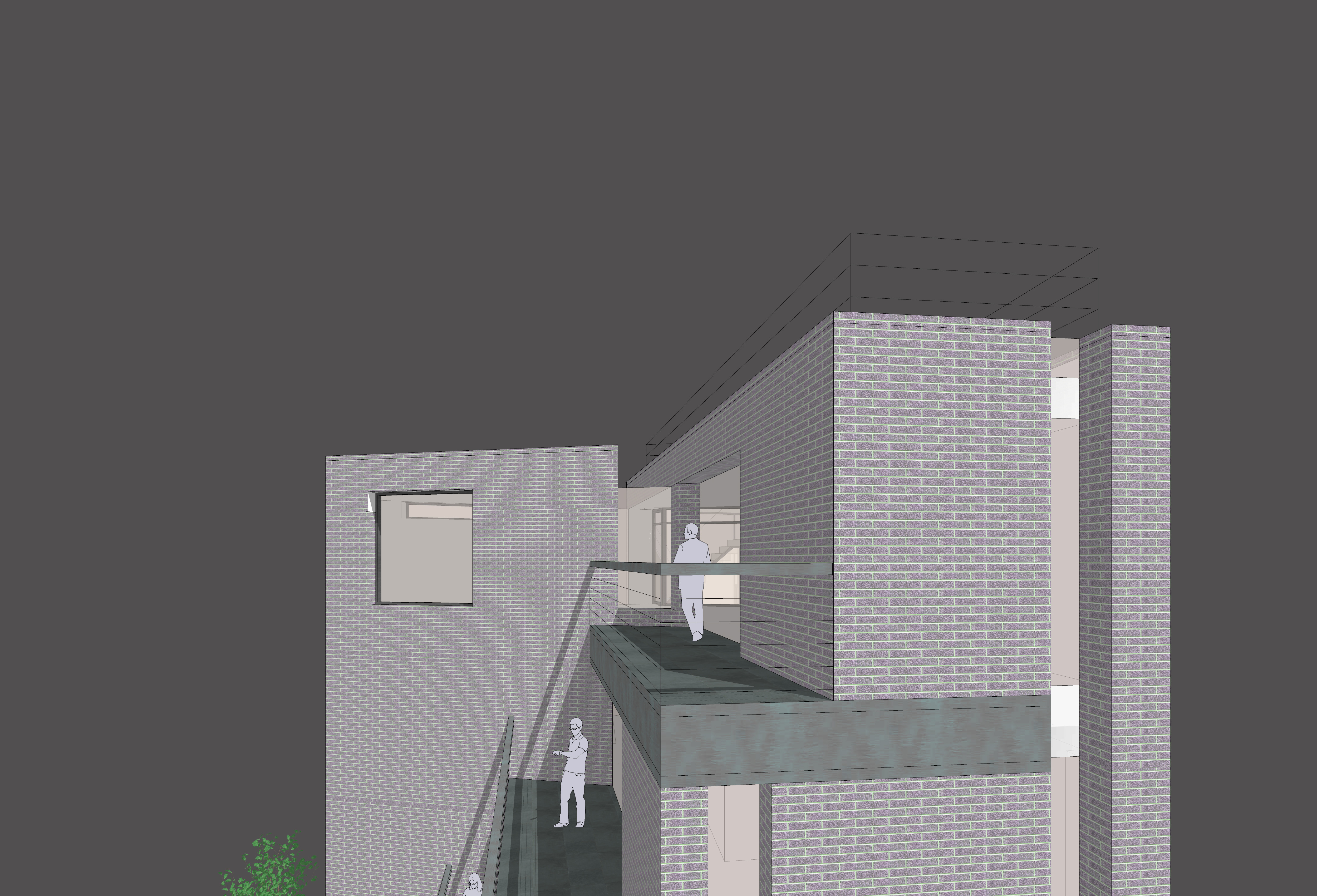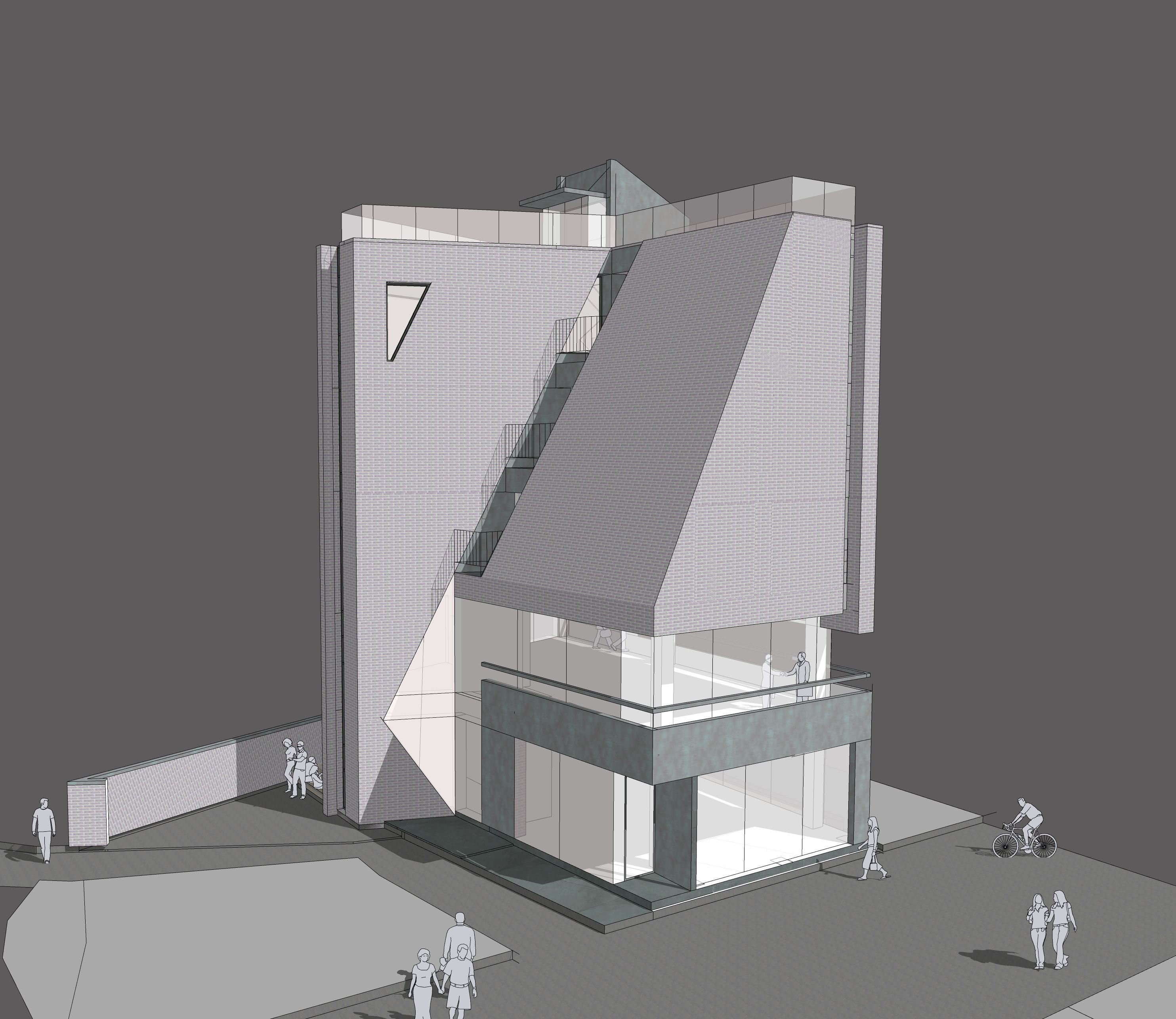 - 상층부는 매스를 코어(계단부분)와 주택을 분절시켜 수직적 요소를 강조
