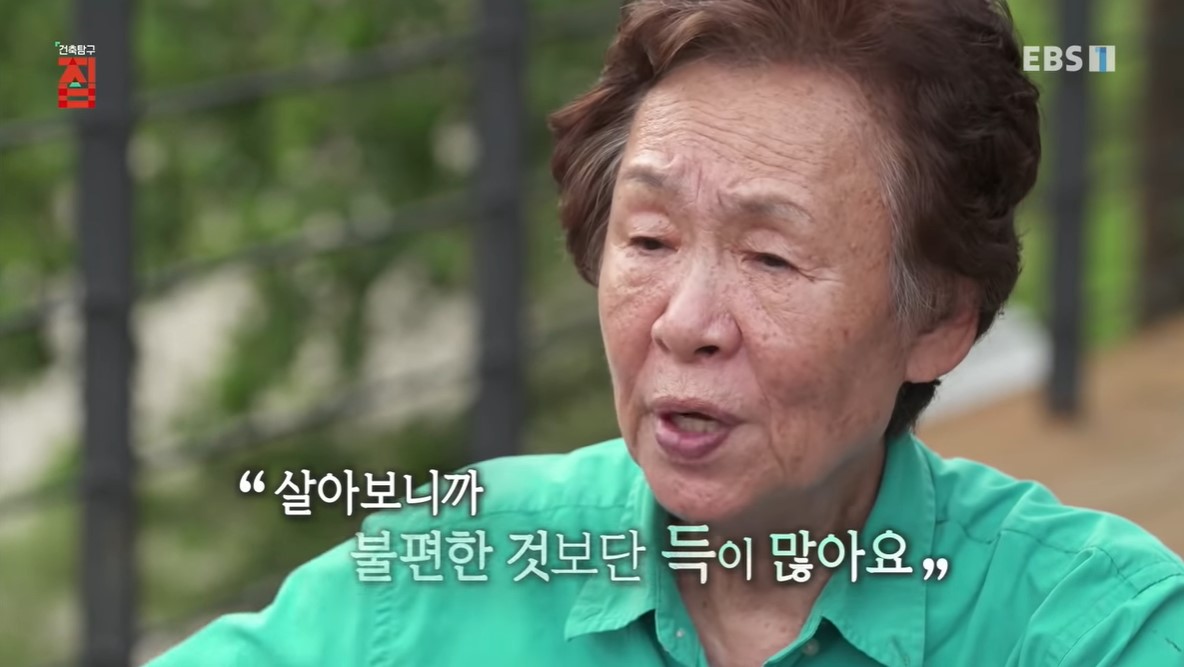 대부분의 사람이 공동주택(아파트)에 거주하기에 편리함이라는 최고의 장점과 반대로 단독주택하면 가정 먼저 떠로으는 단어는 불편함이다. 하지만 불편함보다 득이 많다 라고하며, 경험에서 나오는 답을 주셨다. 그리고 그 "득"이라고 하는 것은 자연을 집에 담는 것으로 해석하였다.