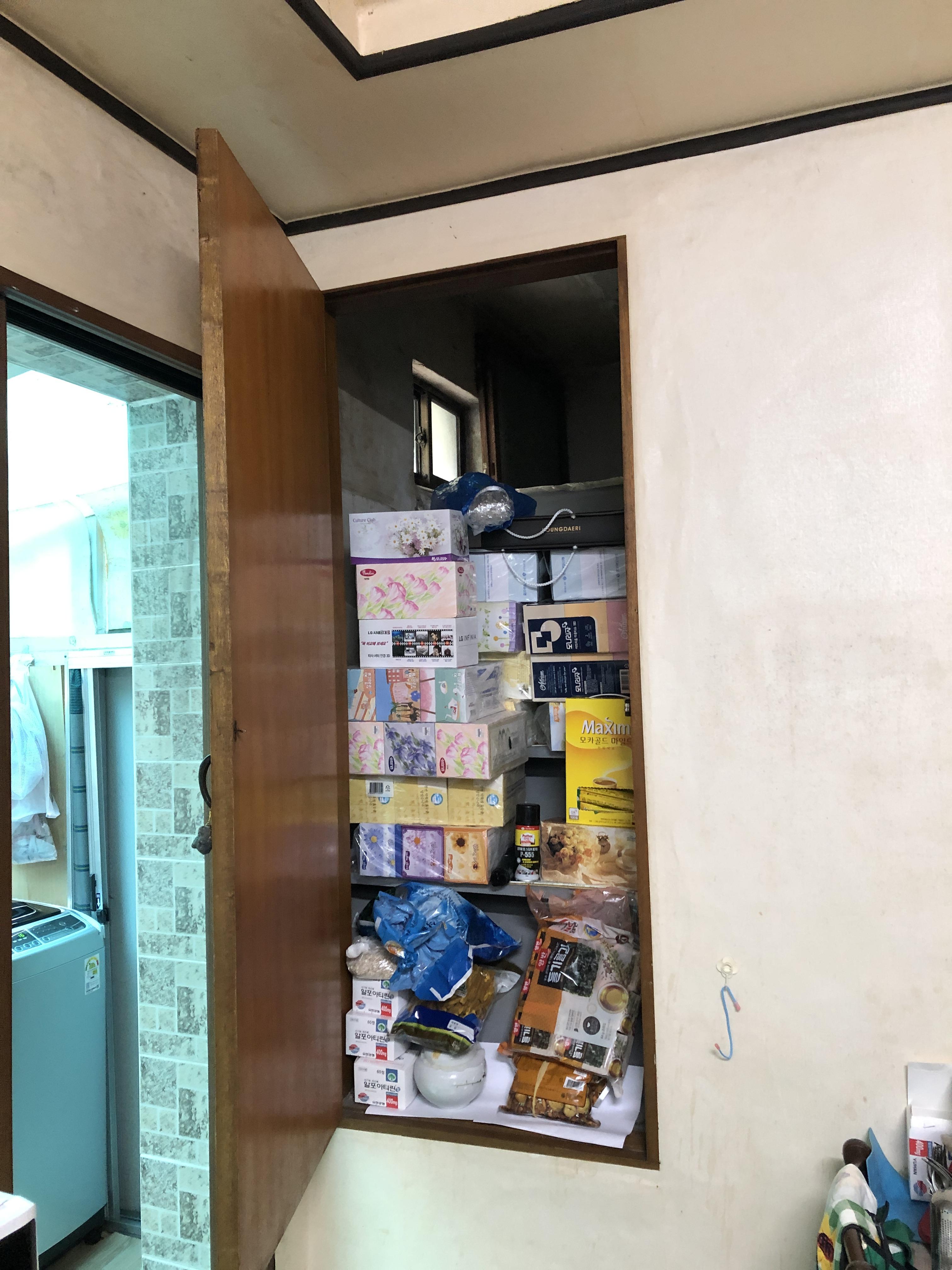 구옥은 화장실 상부에 다락을 만드는 경우가 있다. 다락이라고 하기에는 높이가 많이 낮은 공간이 있다. 사용할 수 가 없으니 들어가는 입구에 생활용품으로 수납하는 경우가 많다. 이집도 1층 화장실과 2층화장실에 다락이 있어 활용할 방법을 찾고 있다.