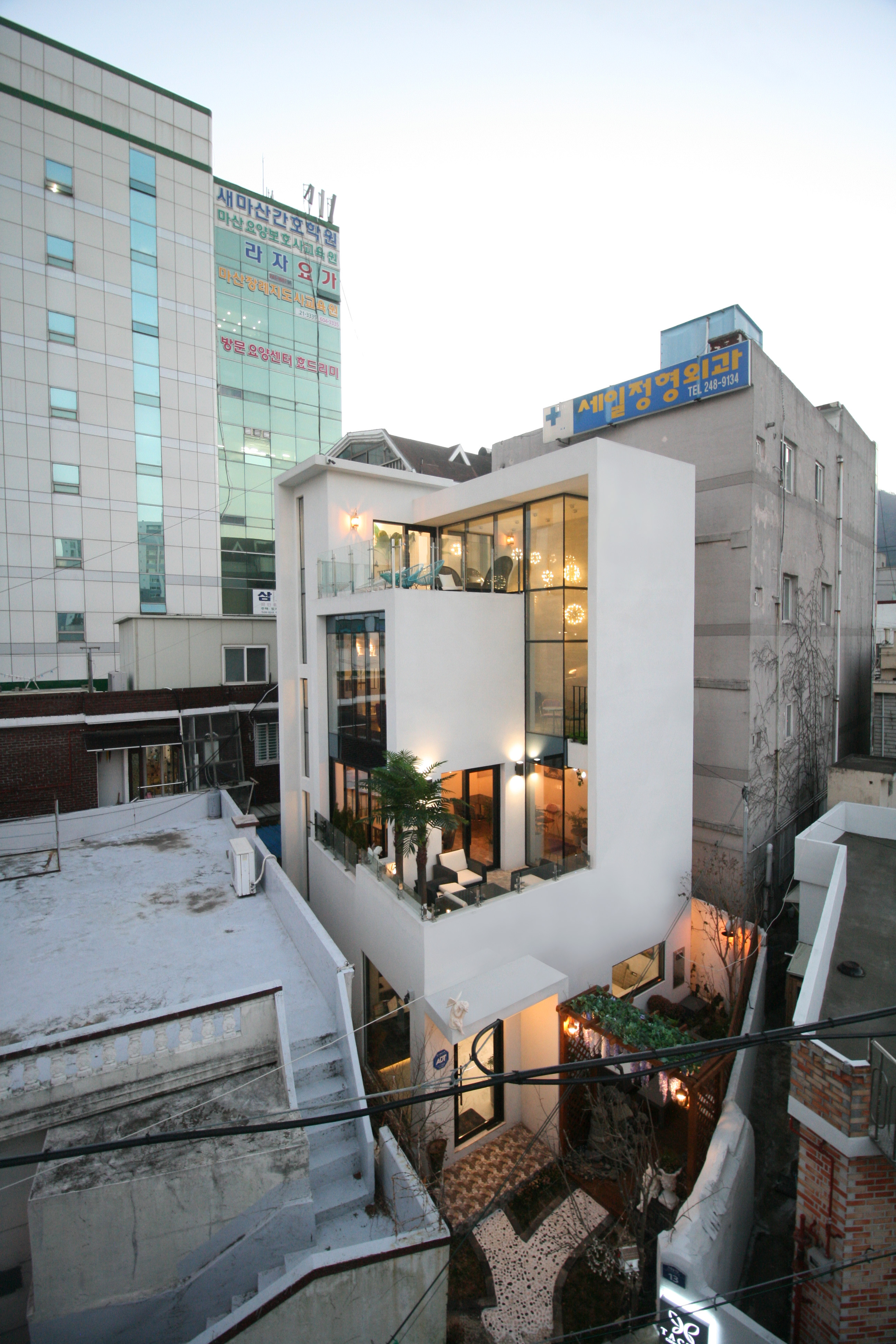 구도심의 30평이 되지않는 숨겨진 땅에 어느 누구든 쉽게 들어가기 망설여지는 음산한 대지에서 동네의 트레이드마크가 되어 그 존재감을 내뿜고 있다. 주변건물로 둘러쌓여져 채광과 일조권이 많이 불리하고, 동쪽방향으로만 시야가 열려 있어 그 방향으로 건물의 개방성을 확보하고, 건물의 입구에는 가려진 듯한 파사드로 손님을 맞이한다.