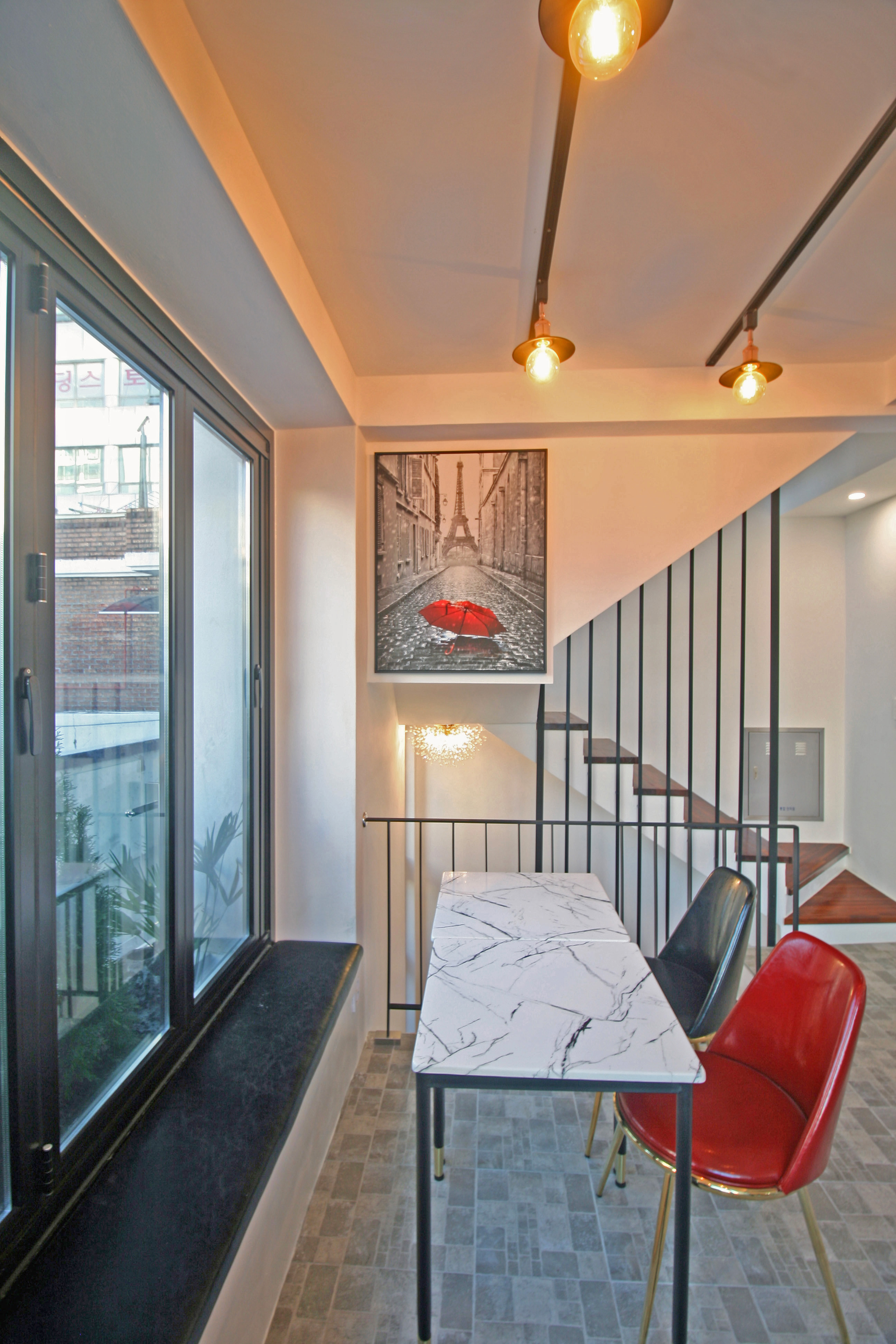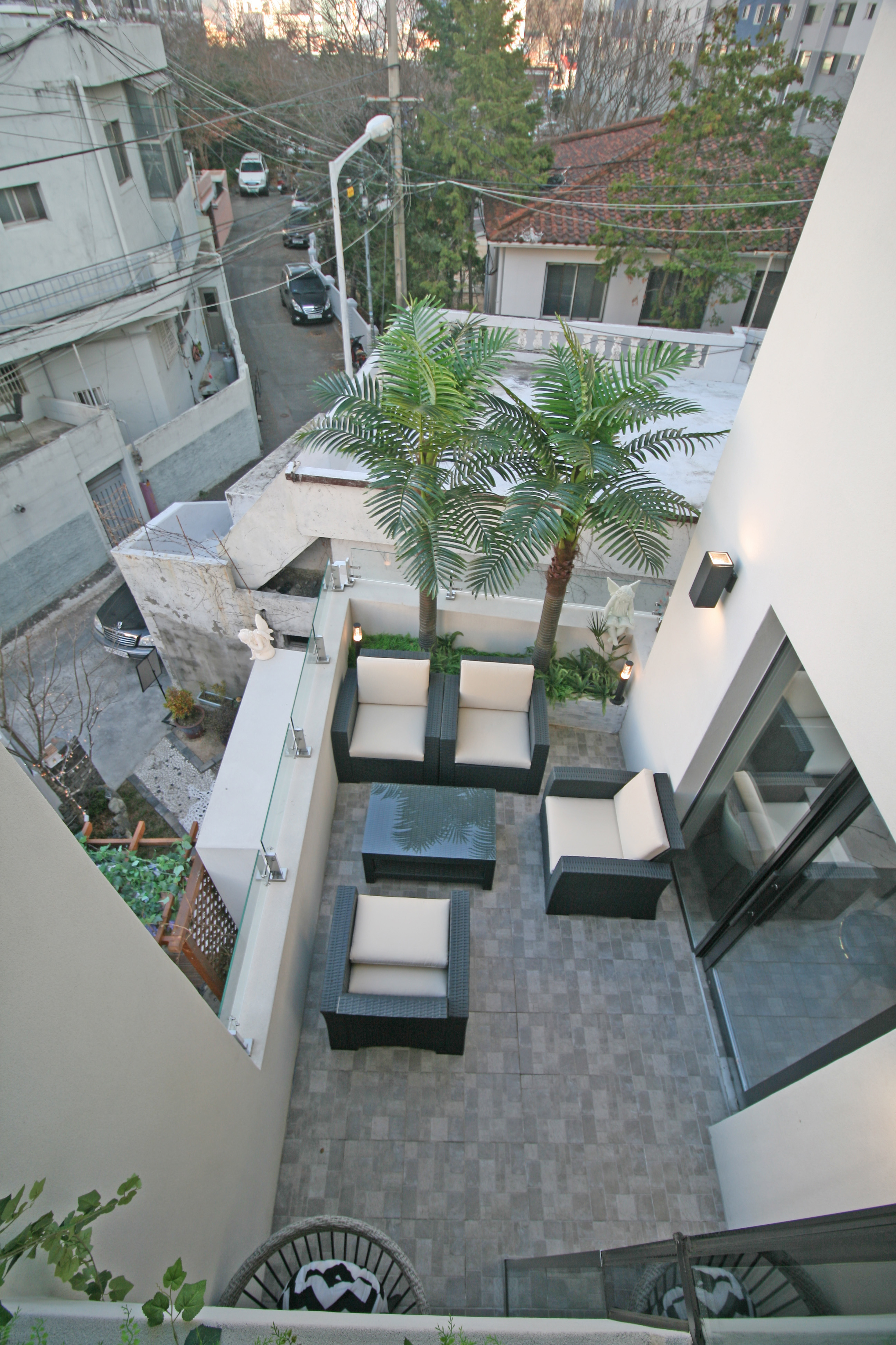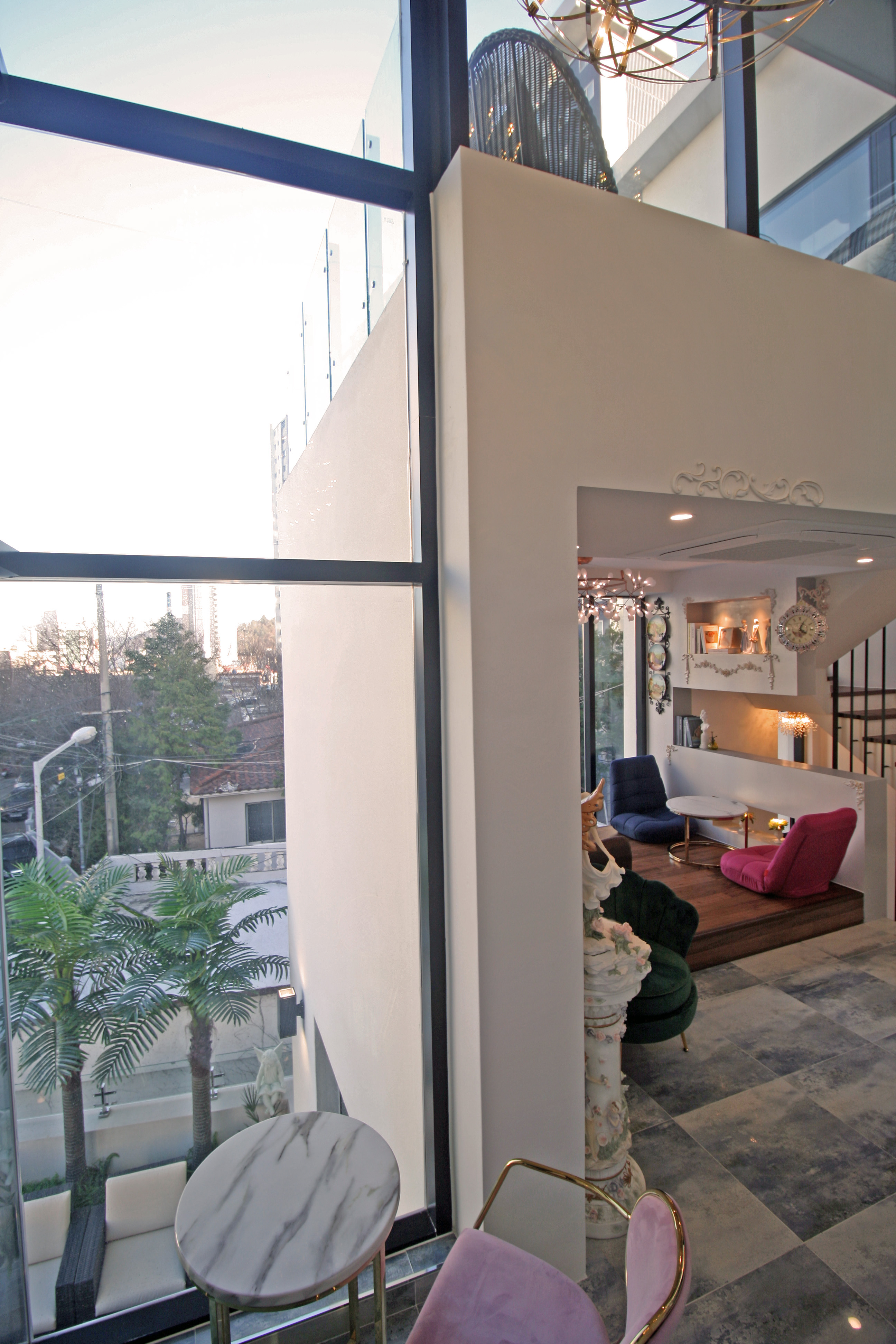 이 작은땅에 무엇을 할 수 있을까? 하는 의심과 의문이 가득하지만, 연면적100제곱미터가 되지 않는 작은건물에서 층층이 테라스(베란다)를 만들어 매장의 내부와 외부의 공간을 확장하였다. 층고를 높여 작은건물의 위엄을 과시한다. 고객의 소중한 시간을 담아 조금이나마 따뜻하게 쉬고 싶은 휴식의공간, 대화의공간을 마련하였다.