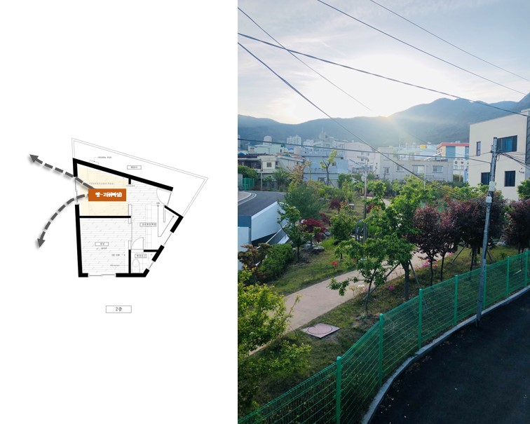 - 소방도로변이며 2층은 녹지조망이며 주변 산책로 경로가 아주 많음