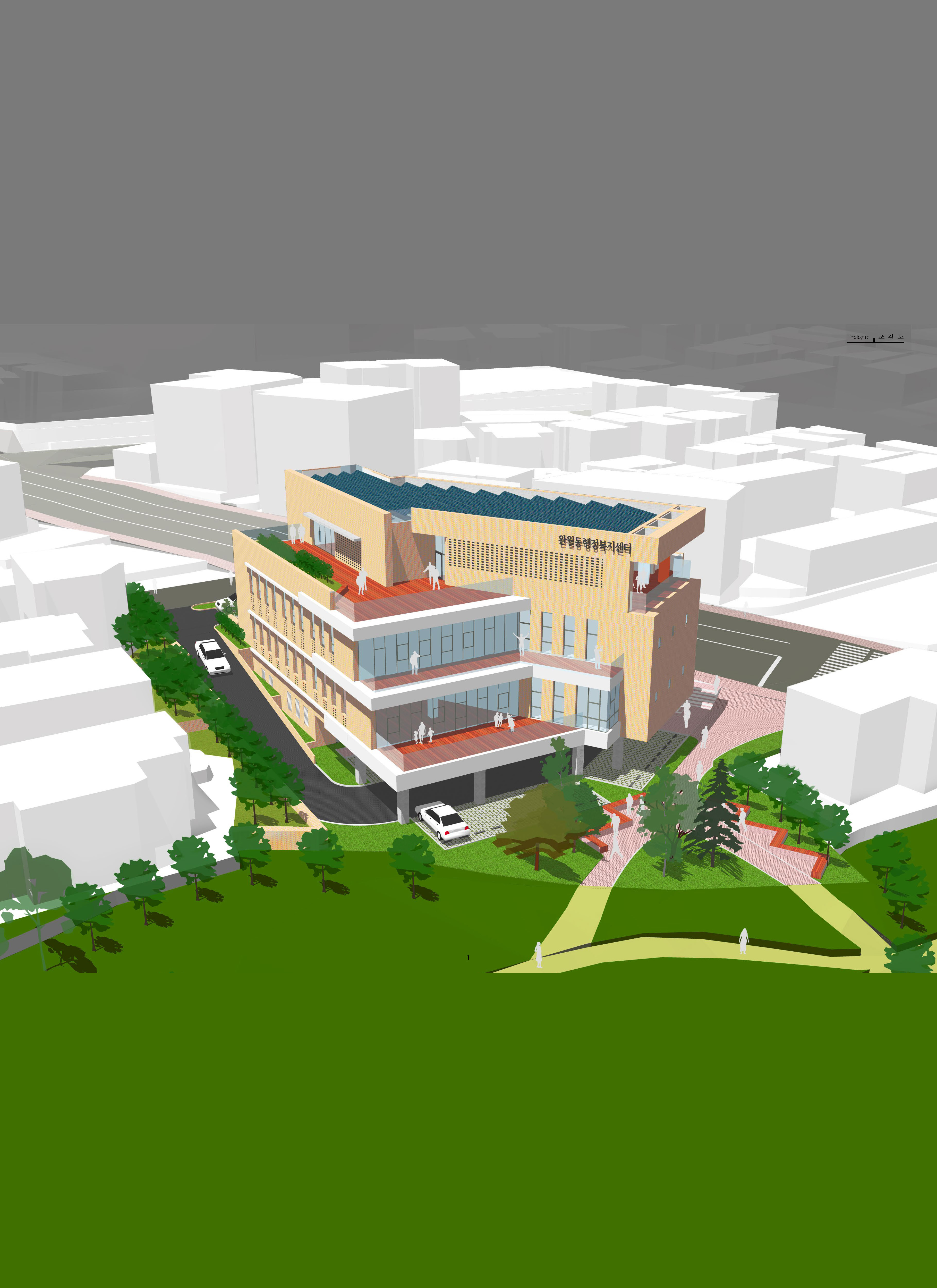 | 2022년 완월동 행정복지센터 설계공모 참여작 | 녹지와 남향으로 펼쳐지는 따듯한 복지센터 | 누구에게나 접근이 쉬운 행정센터
