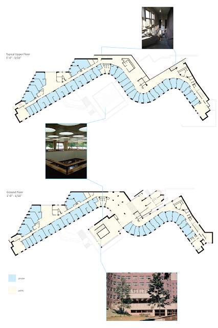 책 p204에 소개하고 있는 알바알토의 MIT의 기숙사, Baker House가 1949년에 완성되었다. 남향의 빛을 최대한 받게 하기 위한 W자의 배치를 선택하였다.