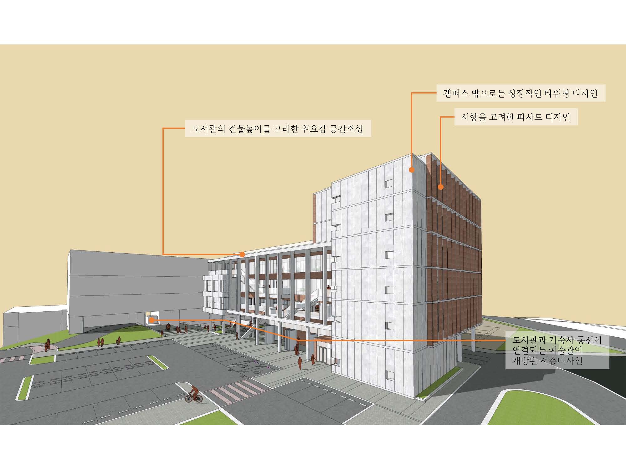-주출입 필로티공간과 소규모 콘서트홀을 계획하여 주변 도서관과 기숙사 이용자들에게 인지성 확보