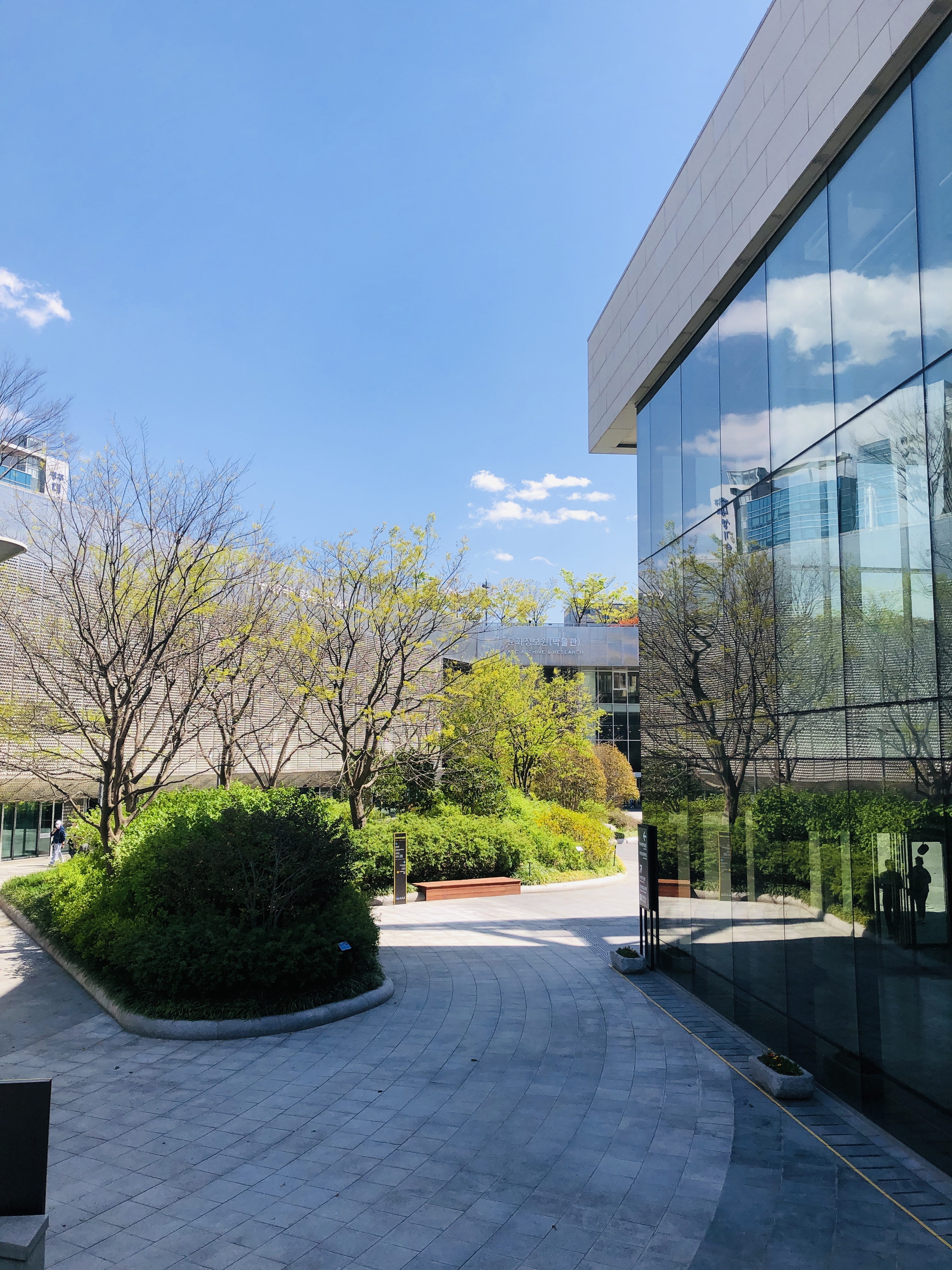 지하로 내려가는 건물의 유리는 계단과 식재등의 모습을 투영시켜 더 넓은공간으로 상상하게 만든다. 지하공간의 조경 또한 잘 가꾸어져 있으며, 건물의 입구와 자연스럽게 연결이 된다.