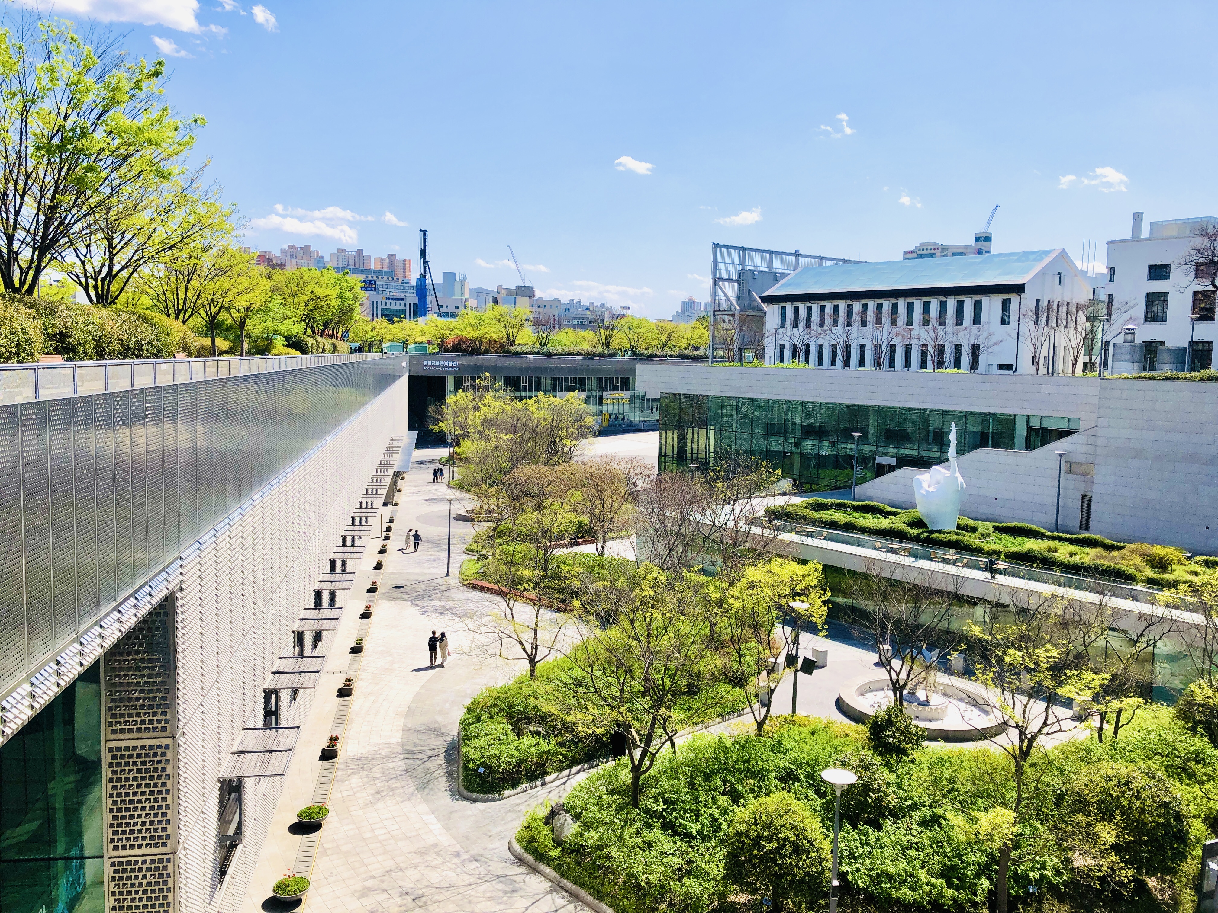 지하로 내려가는 건물의 유리는 계단과 식재등의 모습을 투영시켜 더 넓은공간으로 상상하게 만든다. 지하공간의 조경 또한 잘 가꾸어져 있으며, 건물의 입구와 자연스럽게 연결이 된다.