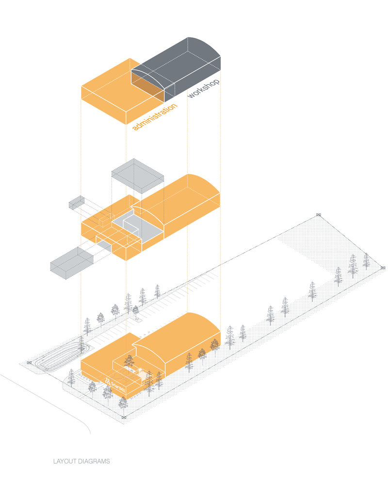 목재 가공 산업을 위한 차세대 자동화 시스템을 구상하는 회사인 Smartmill의 새로운 본사와 공장에 관한 프로젝트입니다. 이 프로젝트의 주요 목표는 전체 목재 구조의 건물을 만들고 기능적일 뿐만 아니라 편안하고 밝고 친근한 공간을 제공하는 것이었습니다. 사옥 프로젝트는 회사의 비전을 건물에 반영하여 지속가능한 방향으로의 구조개선을 통한 수익창출과 직원복지 및 기업이미지 개선을 위한 쇼케이스의 역할을 동시에 수반하여 회사의 가치를 알리게 됩니다.
