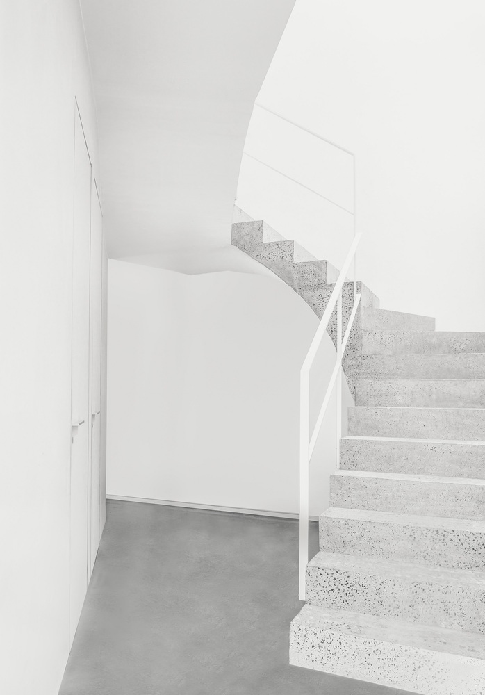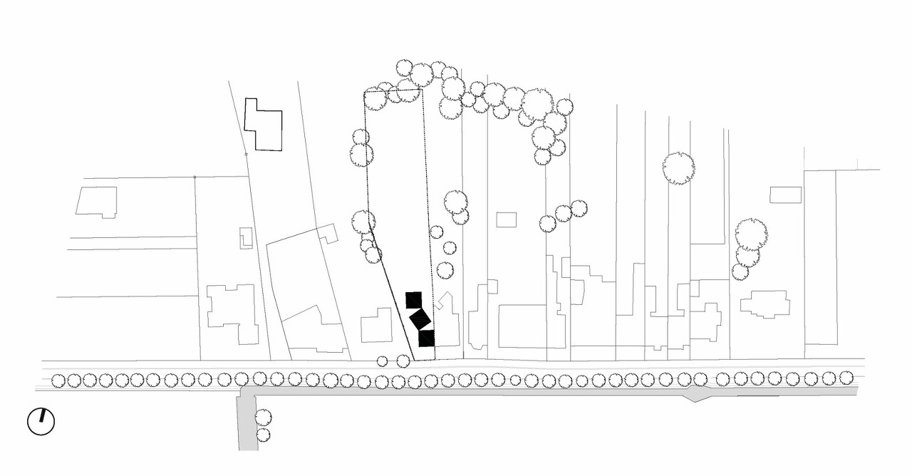 사다리꼴 모양의 대지에서 건축가는 창의적인 아이디어를 찾은듯 합니다. 도로에서 진입하는 곳이 좁고 안쪽으로 들어갈수록 넓어지는 사다리꼴 모양의 대지의 특징으로 인해 건물의 입구가 좁은 단점을 극복하고자 하였습니다.