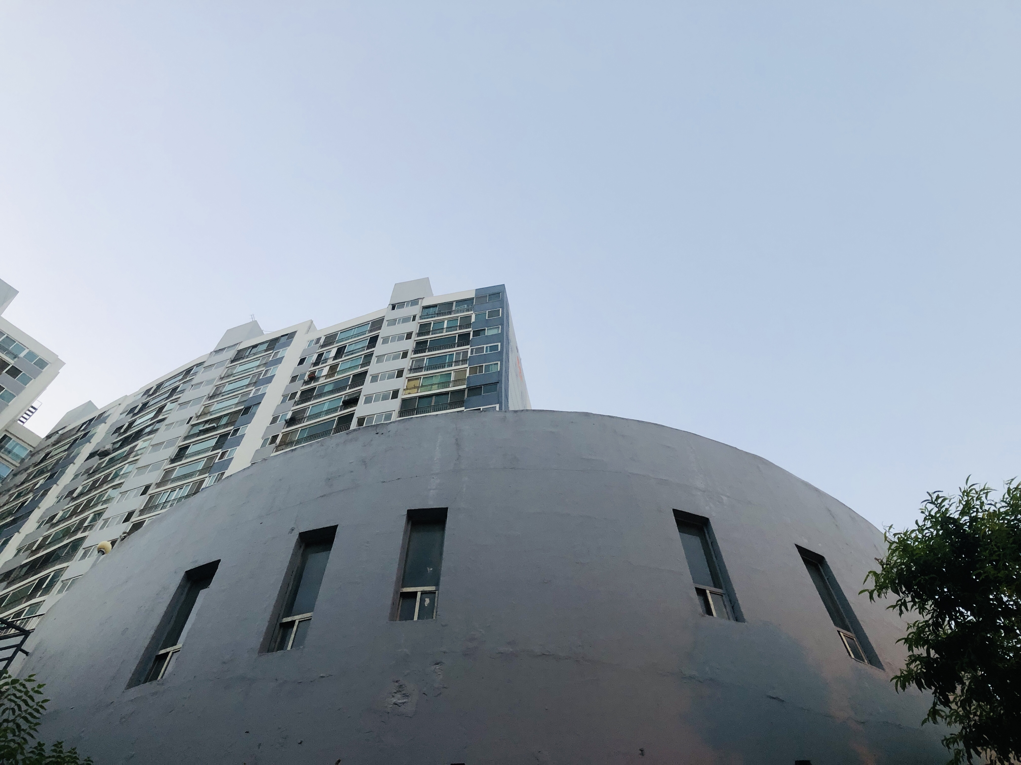 아파트에 속해 있는 부속건물로 길을 걷다가 올라다보게 되는 로툰다(rotunda) 형식의 건물, 네모 세상에 궁금증을 자아내는 갑작스런 원형건물 @자산동,1995