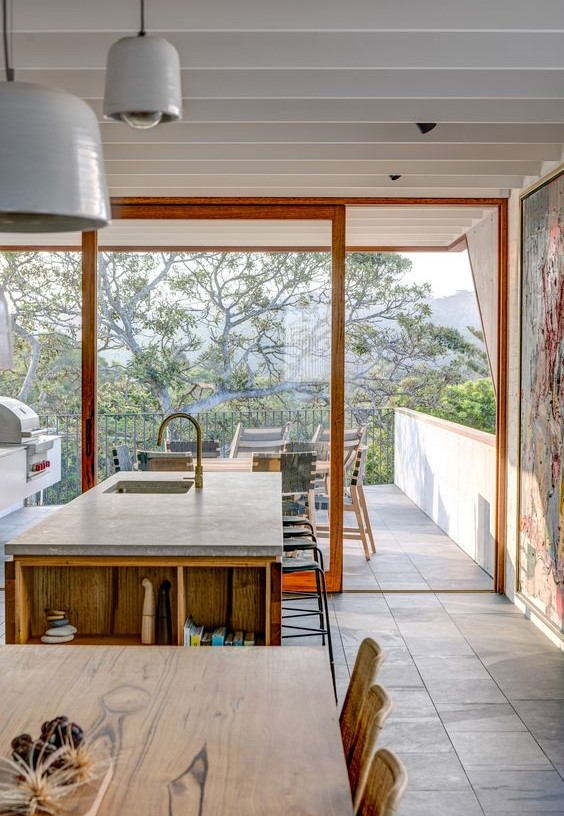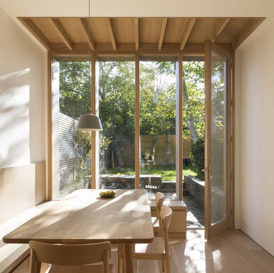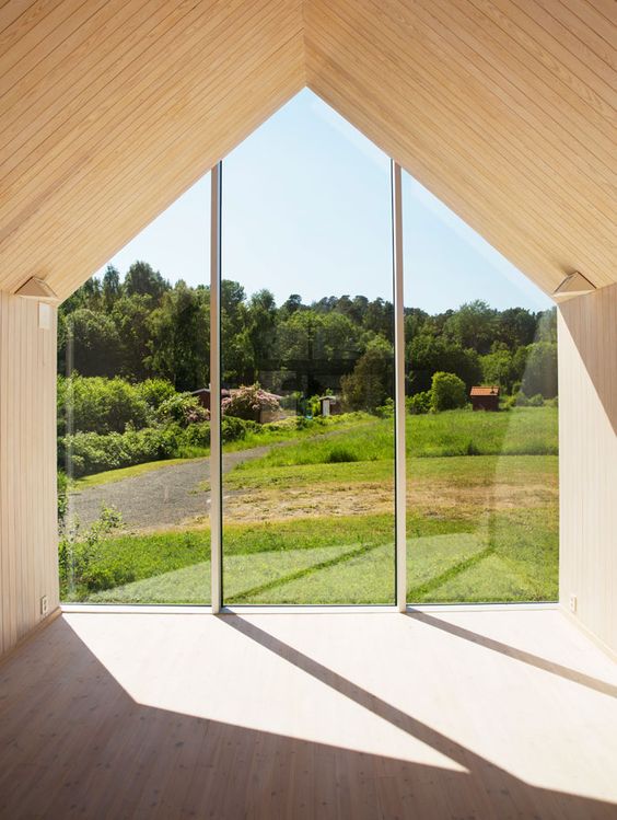 큰 창문에서 밖으로 시선이 통하면 외부공간을 실내로 끌어들일 수 있어서 안팎이 이어진 넓은 공간이 생긴다. 창문이 크면 냉, 난방효율이 떨어질 우려도 있지만, 그 경우에는 단열성과 기밀성이 뛰어난 삼중유리로 커버가 가능하다.