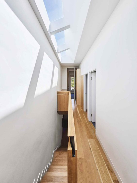 복도나 계단 등 사람의 이동이 있는 공간에는 그 시선 끝에 창을 내는 방법이 있다. 예를 들어 계단 입구에 창문을 설치하면 2층에서 내려올 때마다 창밖의 경치를 즐길 수 있다. 복도에서도 양쪽 벽면보다 끝 부분에 창문을 다는 것이 포인트다. 이동하는 곳에 바깥 경치가 펼쳐져서 자신이 있는 장소에 자체의 면적과 상관없이 밝고 넓은 느낌을 얻을 수 있다. 이 경우에 창밖이 막혀있지 아니하고 최대한 시선이 멀리까지 미치는 장소를 고르거나 나무를 심어 바깥의 경치를 볼 수 있게 큰 유리로 '픽처 프레임 윈도'처럼 즐길 수 있으면 이상적이다. 창문도 가운데를 가르는 쌍미닫이창은 시선의 방해가 된다.