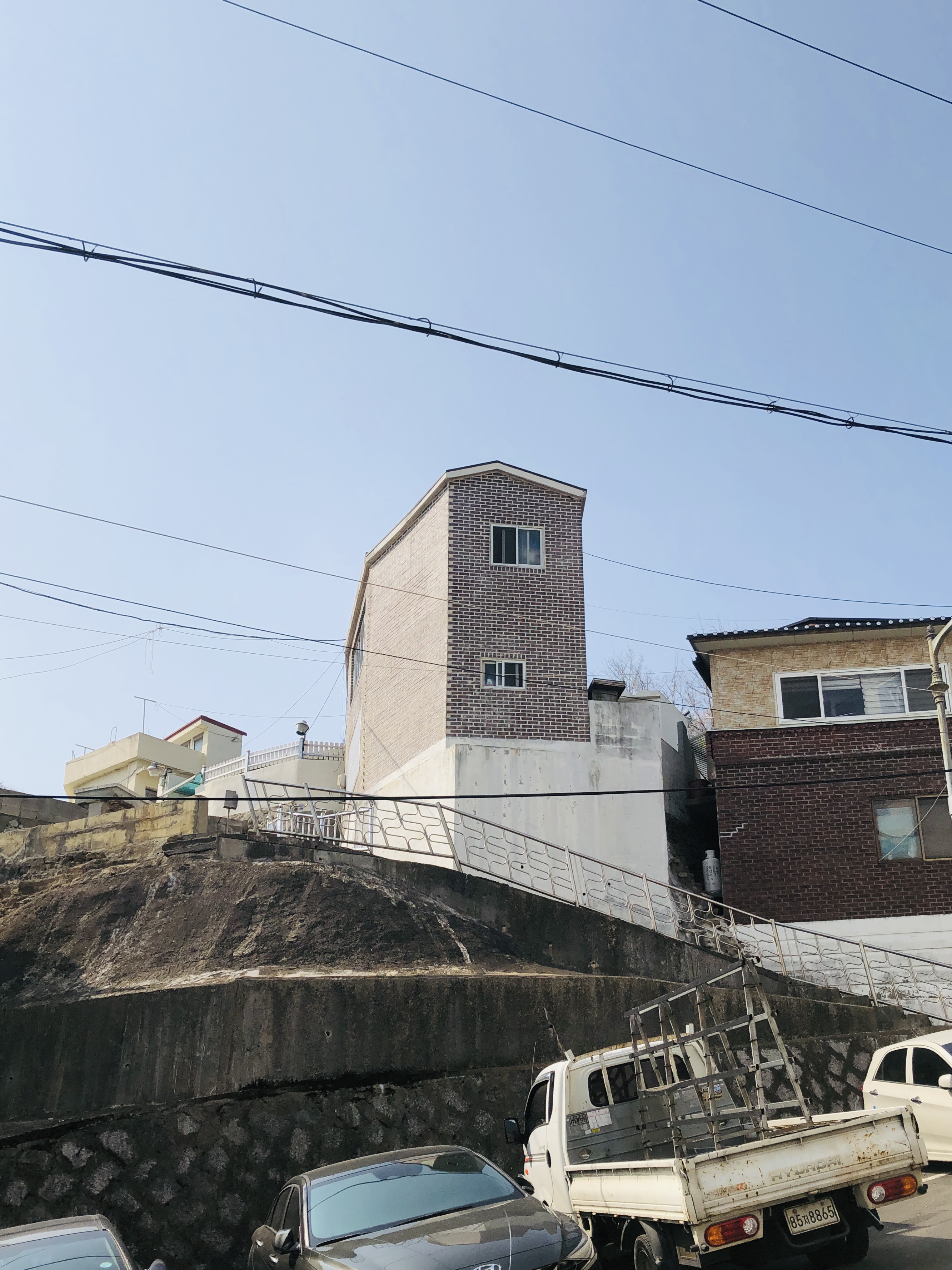 마산 성호동에 가고파 꼬부랑길은 성호동과 추산동에 30여가구를 잇는 경사지 골목이다. 꼬부랑길과는 100미터 정도 거리가 있는 곳이지만, 경사지와 꼬부랑 지형은 연결되는 곳이다. 지형 따라 솟아올라 캐슬(Castle)과 같은 50제곱미터의 2층 협소주택 @성호동, 2004