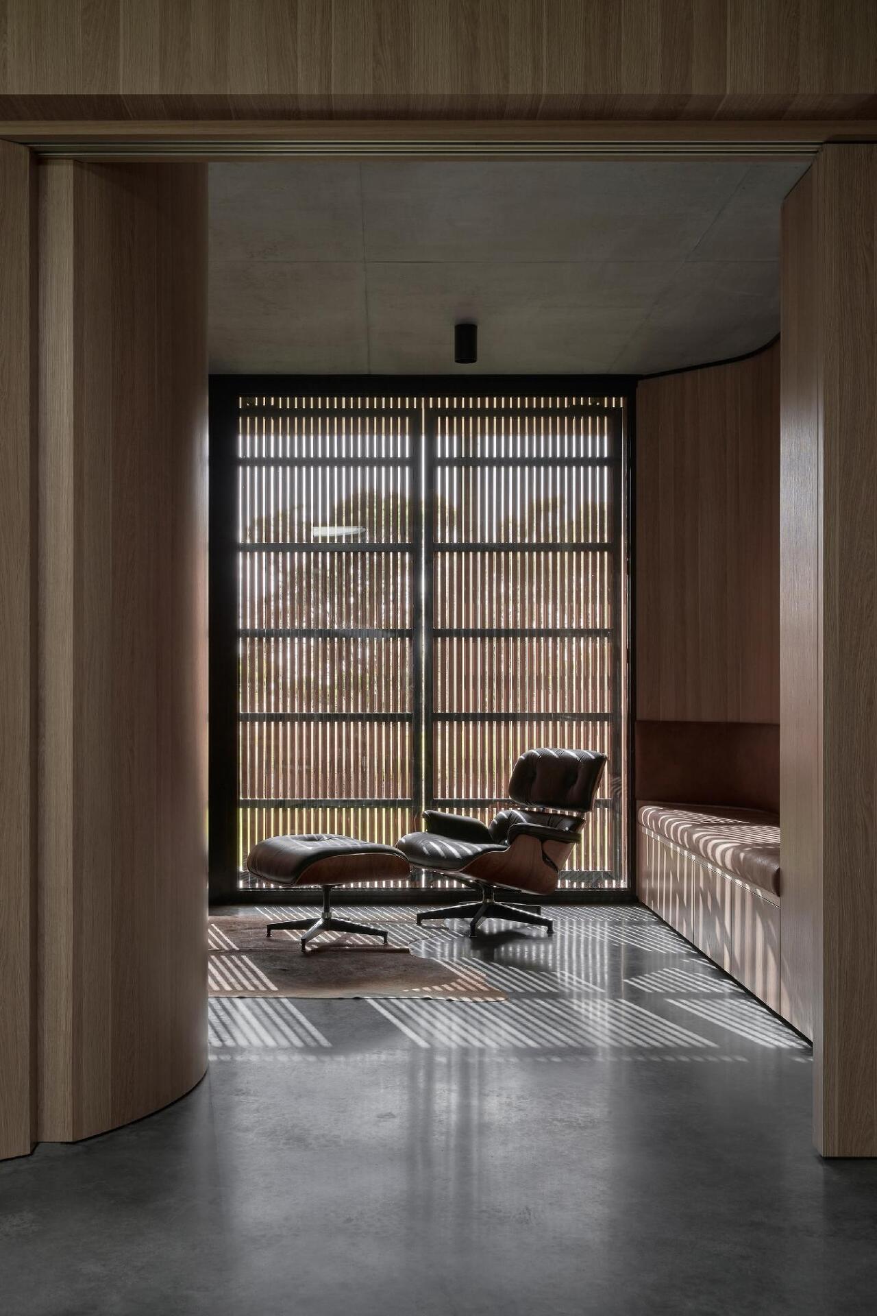 목재와 콘크리트, 내외부, 공과사적영역 등의 두개의 키워드를 병치하여 공간의 질서를 만들어 내고 있습니다.
