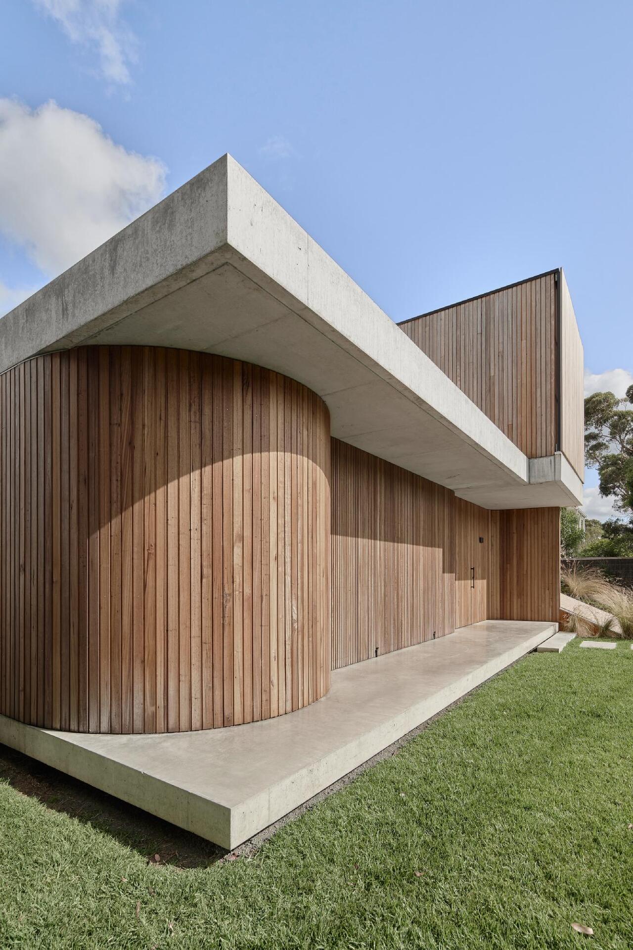 [Bobbanarring] is the indigenous name for the area. [Casa] references Oscar Niemeyer’s - Casa Canoas from 1951. The house is sited between a large open grassed area setback to the street and foreshore to the south and a vividly contrasting green