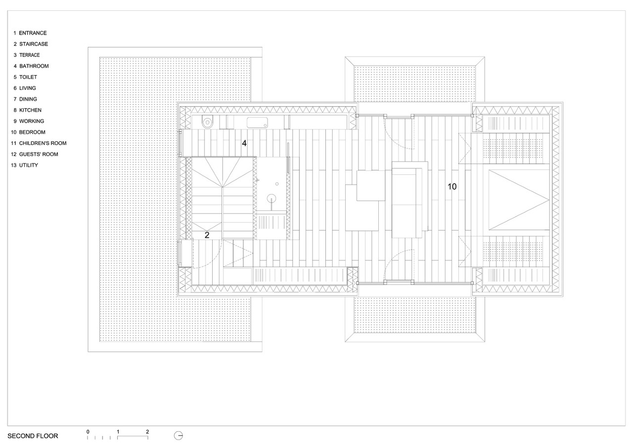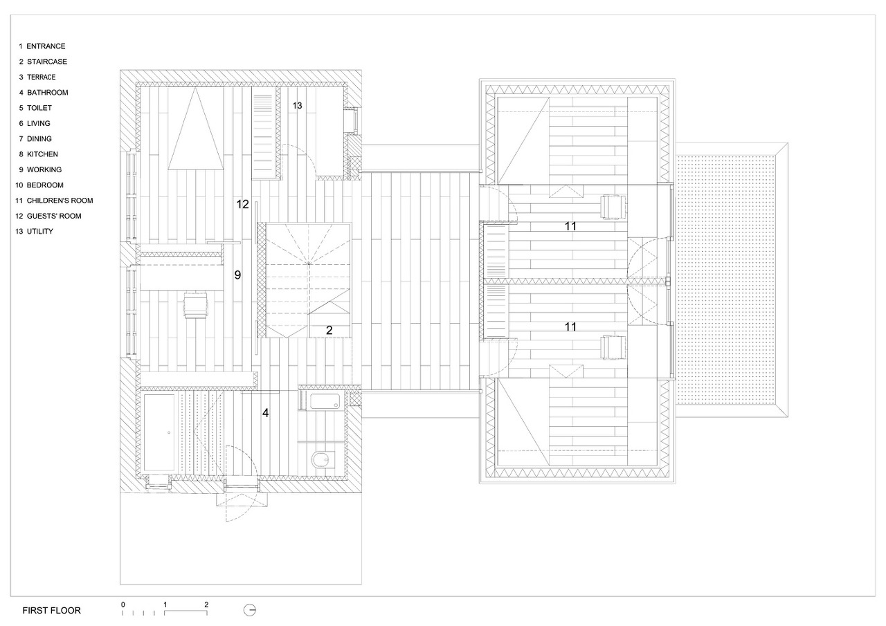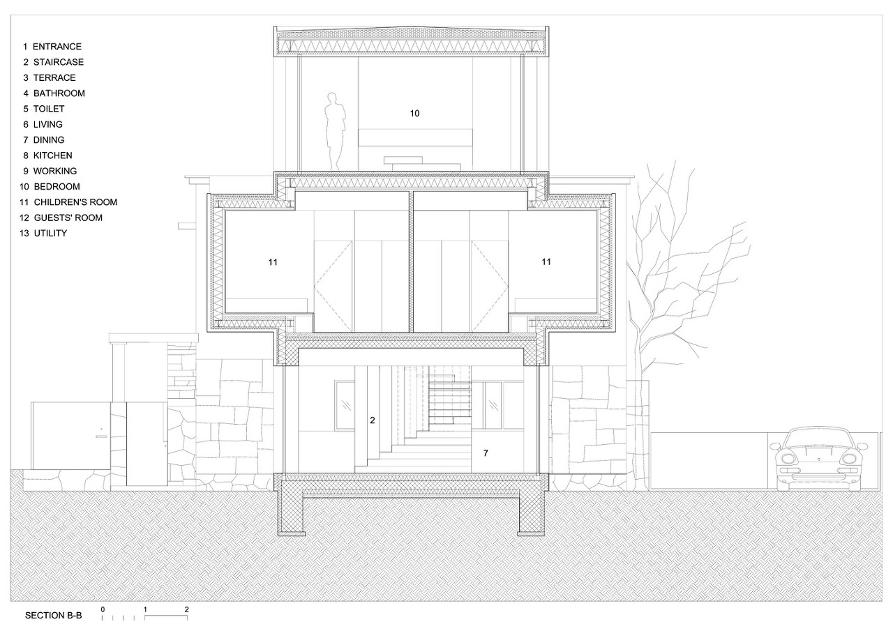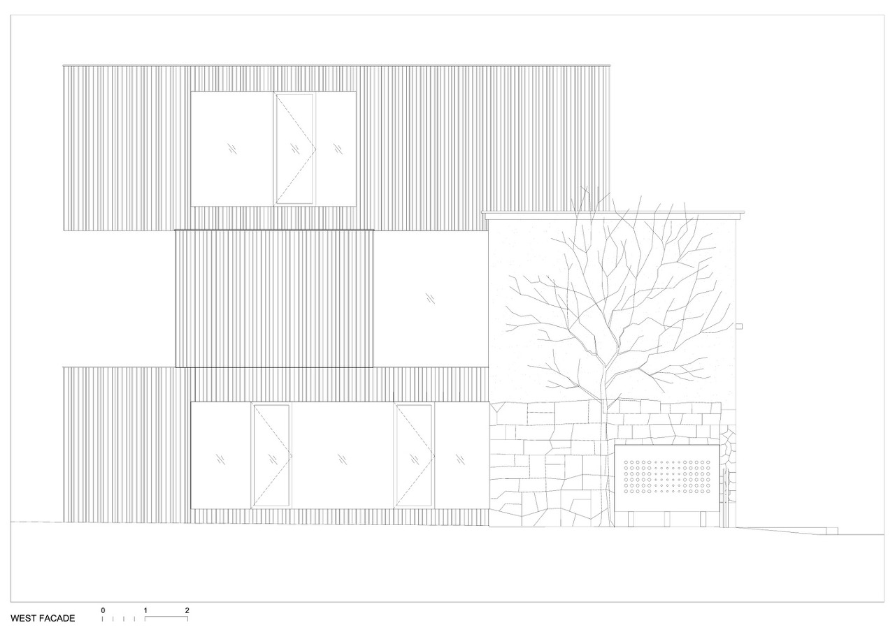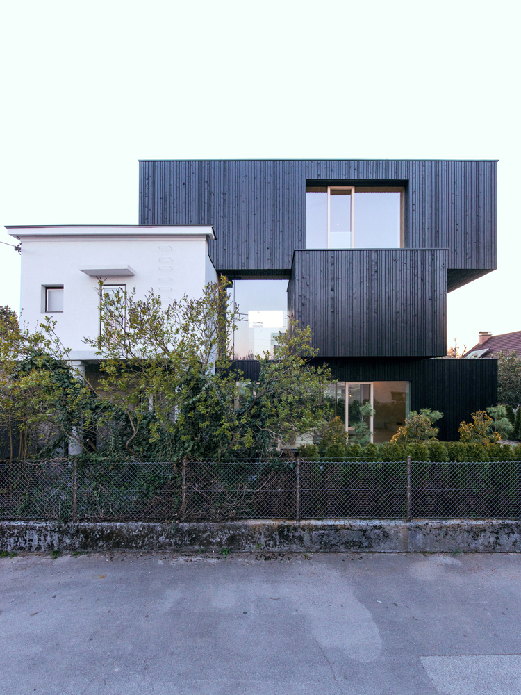 1934년에 슬로베니아 지역에 지어진 작은 주택을 증축하기 위한 주택 리모델링 프로젝트입니다. 층별 50제곱미터 정도씩 증축해나가는 방식이며, 층별로 어긋나게 3개의 박스를 조합하여 채움과 비움을 반복하여 건물의 형태와 공간이 완성되는 방식을 채택하였습니다. 오래된 집의 질감은 유지한채 오래된 집과 증축된 집이 서로 다른방식으로 연결이 됩니다. 증축되는 주택은 목재클래딩으로 외장을 구성하고 있어 기존주택과 대조적 분위기를 자아내며 공간적으로는 오래된 주택과 증축된 주택의 질감을 유사하게 유지되는 방향으로 공간의 연속성을 고려하였습니다.