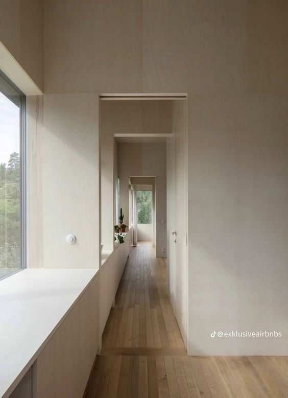 바닥과 벽을 구분하는 것을 걸레받이라고 부르다. 몰딩과 걸레받이 외에 창문(새시)을 둘러싸는 창틀을 없애기만 해도 벽면의 어수선함이 줄어들고 단정해진다. 공간의 쾌적함에 있어서 시각적인 요소는 필수인데 산만하게 어지럽혀져 있는 것보다 정돈된 모습이 마음의 안정을 준다. 과도한 디자인을 최대한 생략하는 아이디어가 효과적이다. 심플한 마감과 돋보이는 가구나 식물 등으로 인테리어를 하면 나중에 공간분위기를 바꿀 때도 어렵지 않다.