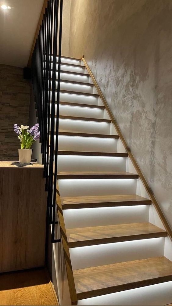 하부 간접조명은 공간의 중심을 낮추어 안정된 분위기를 연출하는데 사용된다. 주택에서는 현관에 높이차이나는 곳, 현관바닥과 신방장사이, TV장과 같이 낮은 가구 놓는 곳, 계단수직면이나 스텝면에 설치하게 된다. 바닥의 높이차이가 나는 곳이면 경계를 구분하여 보행 시 안전도 향상된다.