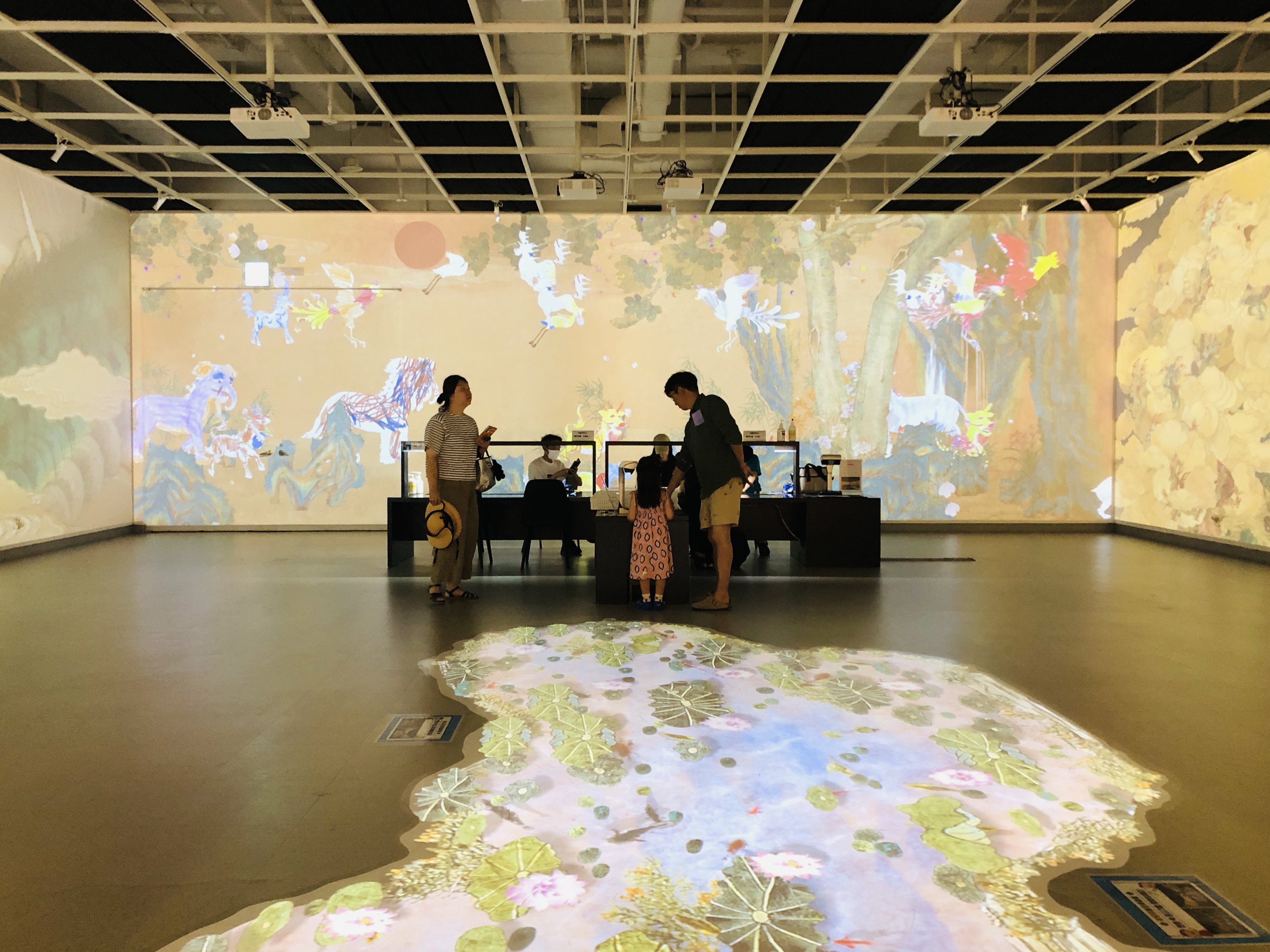 미디어아트로 신라의 문화유산을 표현한 전시기법으로 신라의 화려함과도잘 어울렸다.
