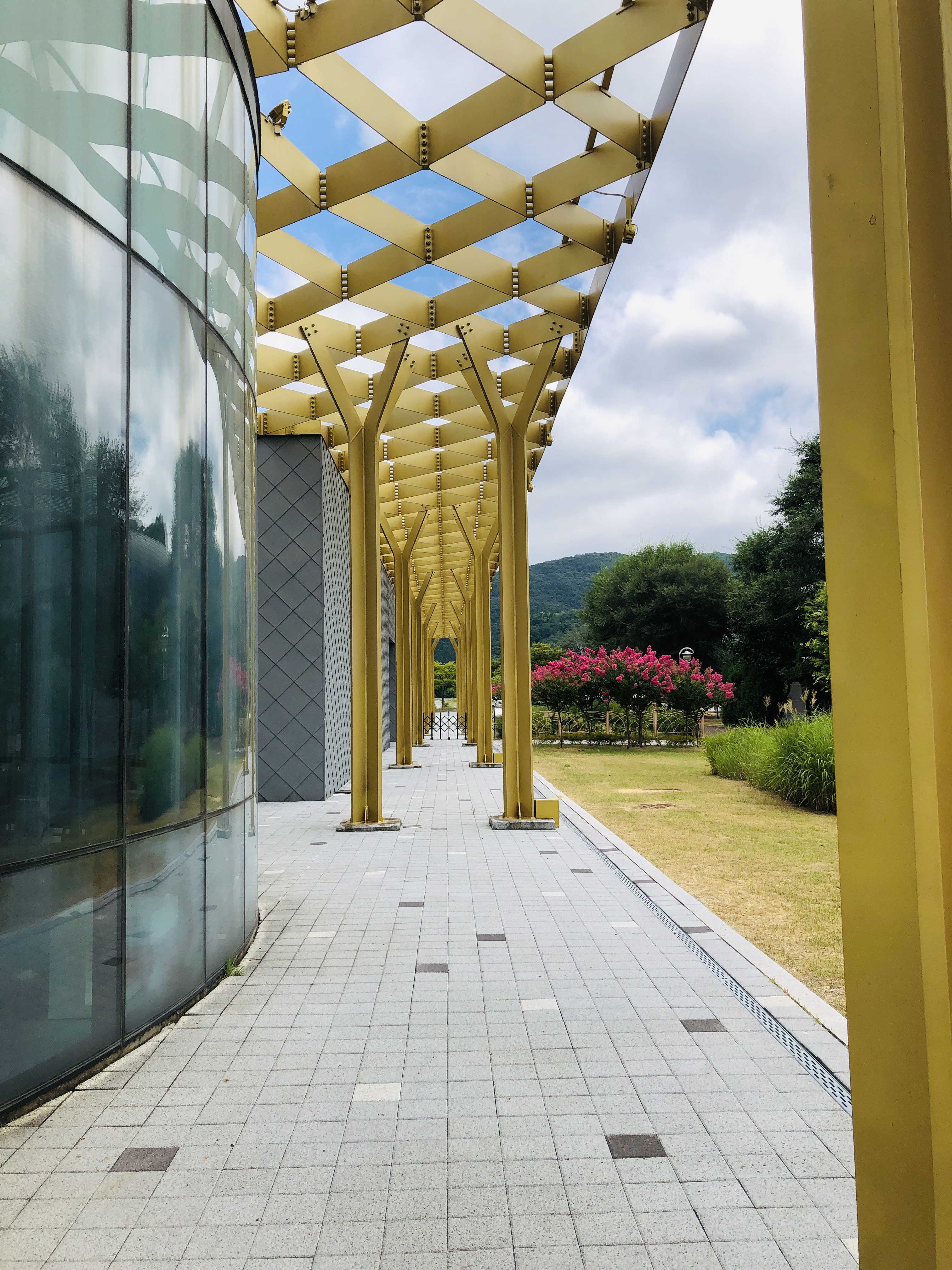 엑스포 입장하면 왼쪽 편으로 쭉 들어가면 존재감 없이 노란색 금속 기둥과 캐노피로 건물을 둘러싼 열주공간이 나온다. 세계적인 일본건축가 쿠마겐코가 설계한 건물이며 살롱헤리티지라는 홍보관을 마주한다. 그의 명성에 비하면 썩 잘 지어진 건물은 아닌 듯하다.