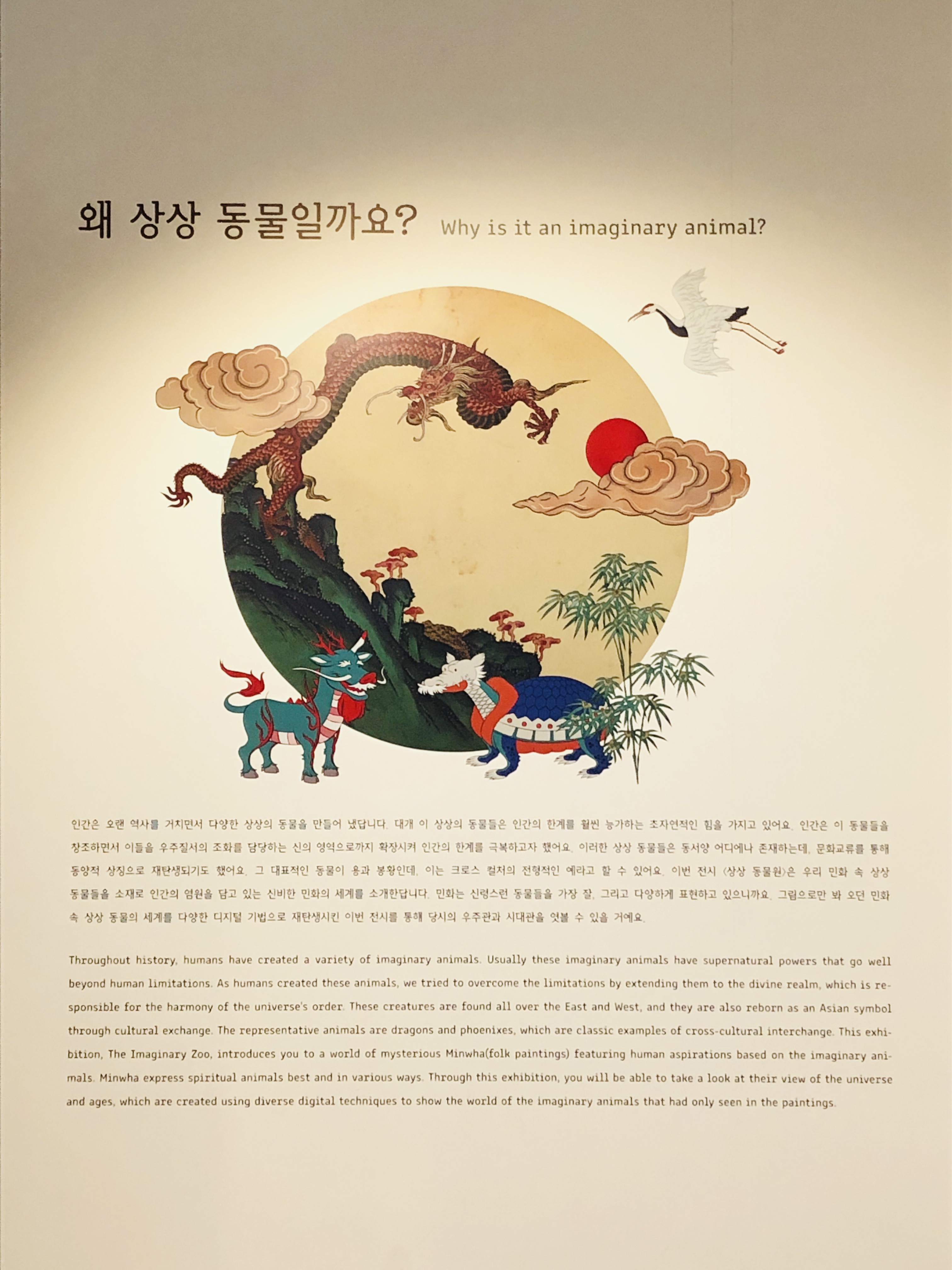 상상동물원은 기념관의 기획전시로 전설 속 동물을 소개하고 있다. 움직이는 영상이 벽면에 360도에 비춰지고 직접그린 그림도 스캔하여 전시영상에 추가되어 자신의 그림도 전시품의 일종이 되어 움직이게 되는 체험형 전시이다.