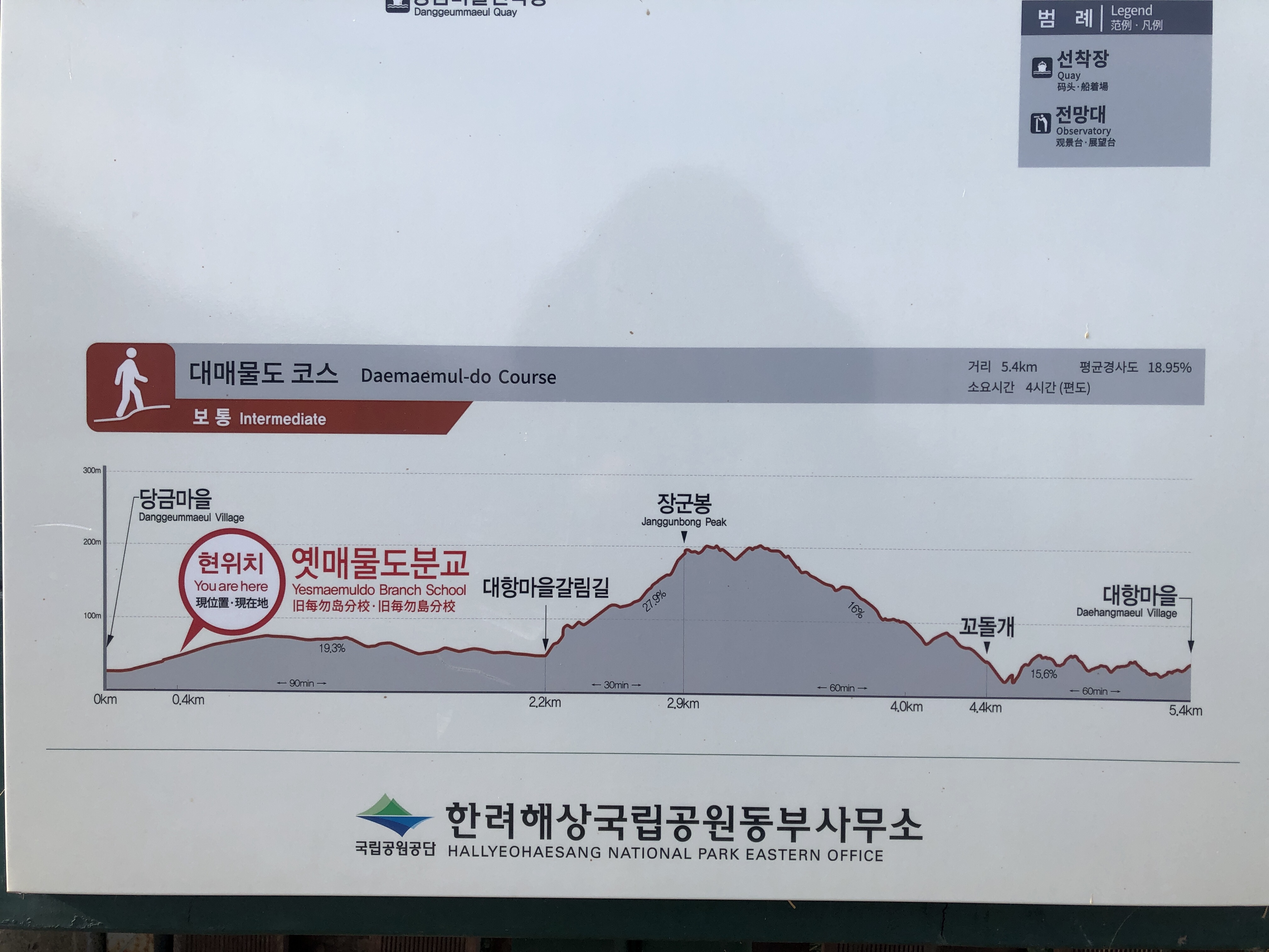 섬 주변으로 산책로 조성되어 있다. 장군봉은 짧은 거리에 경사가 높아 힘들 수 있으나 올라간 만큼 전망은 더 좋다. 섬에 오면은 둘레길이라고 해야 하나 섬주변으로 조성된 산책로는 가보는게 좋다. 다양한 모습이 순간순간으로 시시각각 변하기 때문에 1박 2일간 다양한 모습을 보기에는 시간이 참 짧다. 당근마을에서 매물도 분교 주변과 장군봉으로 한 바뀌 산책해 보는 것을 추천드린다.