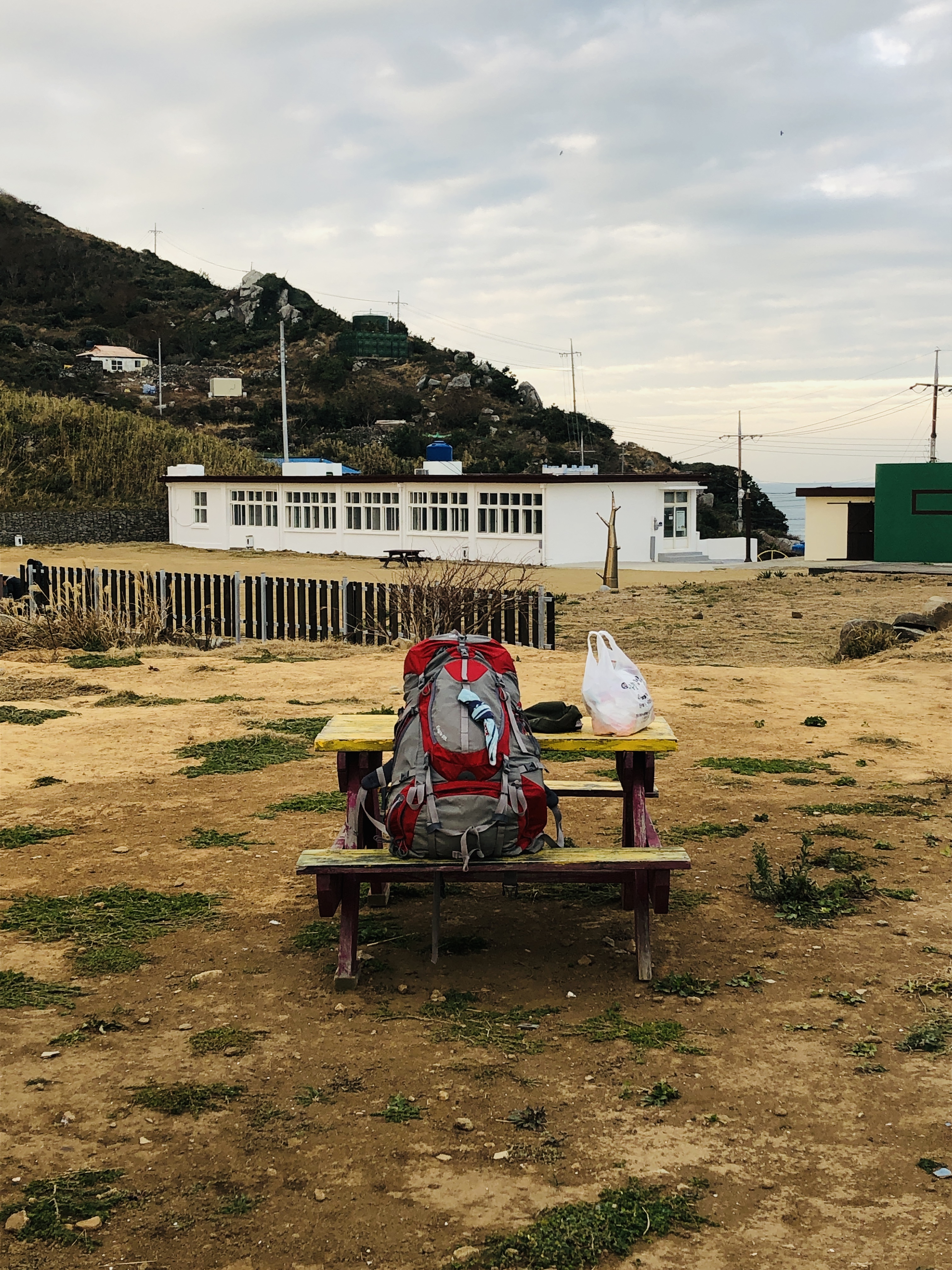 12월 평일 바람이 잔잔한 어느 날을 선택해 통영 여객터미널로 향한다. 통영여객터미널에서 뱃길로 1시간 30분 정도 지나면, 대매물도 북쪽항인 당금 마을에 도착한다. 선착장에는 관리사무소가 있어 야영장비용15,000원을 현금으로 지불하고 100m가량 걸어올라 가면 폐교가 나온다.