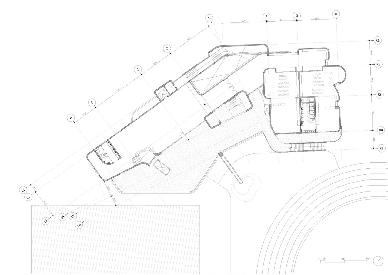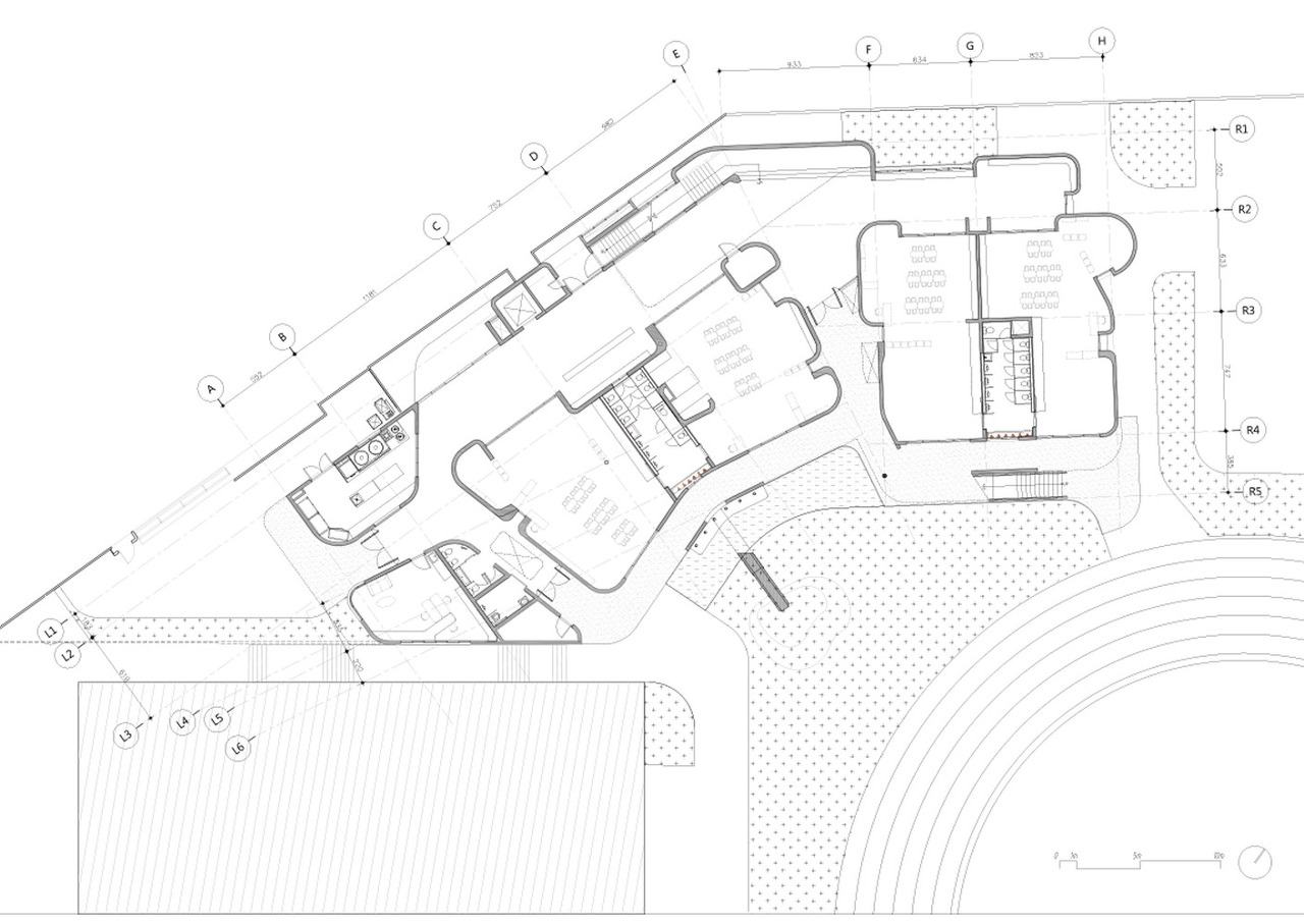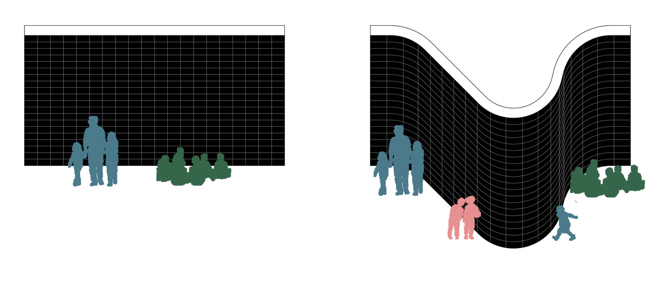 평면의 모든 벽체 모서리를 직각이 아닌 곡면으로 구부려 다양한 공간과 연속적 공간을 만들어낸다. 아이들의 안전한 학교생활을 고려한 모서리 디자인이기도 하다. 모든 구조적 벽은 직선과 곡선의 조합으로 되며 효율성과 유동성 그 어딘가의 균형을 이루려고 한다. 벽의 볼록면과 오목면의 반복은 공간 사용면에서도 이중적인 효과를 누리고 있다.