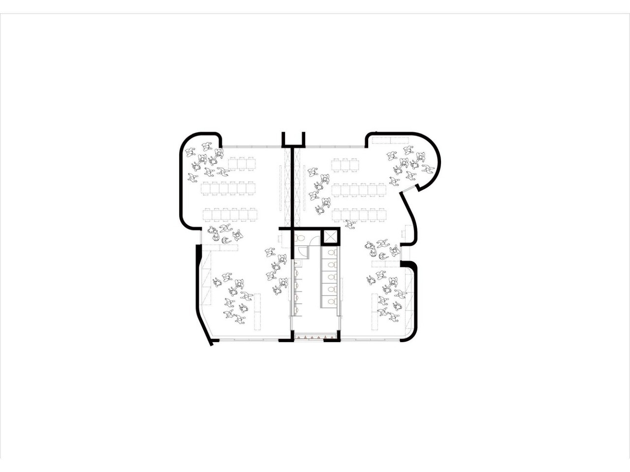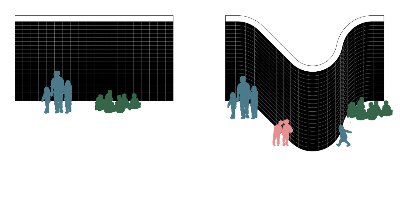 평면의 모든 벽체 모서리를 직각이 아닌 곡면으로 구부려 다양한 공간과 연속적 공간을 만들어낸다. 아이들의 안전한 학교생활을 고려한 모서리 디자인이기도 하다. 모든 구조적 벽은 직선과 곡선의 조합으로 되며 효율성과 유동성 그 어딘가의 균형을 이루려고 한다. 벽의 볼록면과 오목면의 반복은 공간 사용면에서도 이중적인 효과를 누리고 있다.