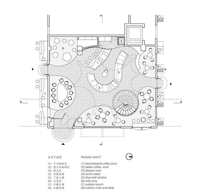 Text description provided by the architects. The Cafe is located in one of the most flourishing Shopping District in Shanghai. The idea is to make a peaceful environment for people who want a coffee-break from their ordinary busy lives, in which they could have their imagination be free.
