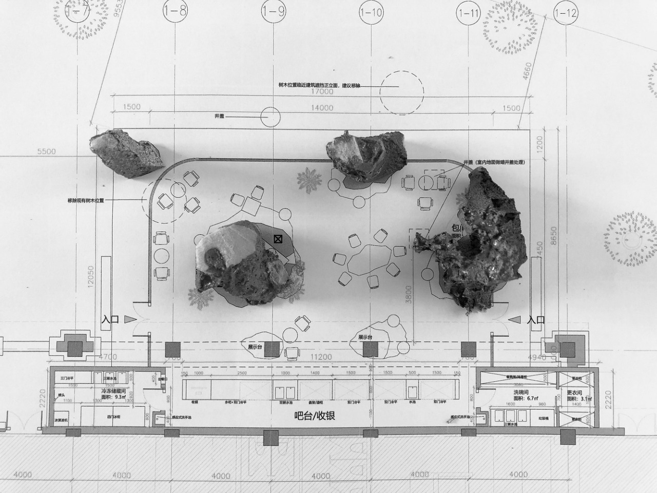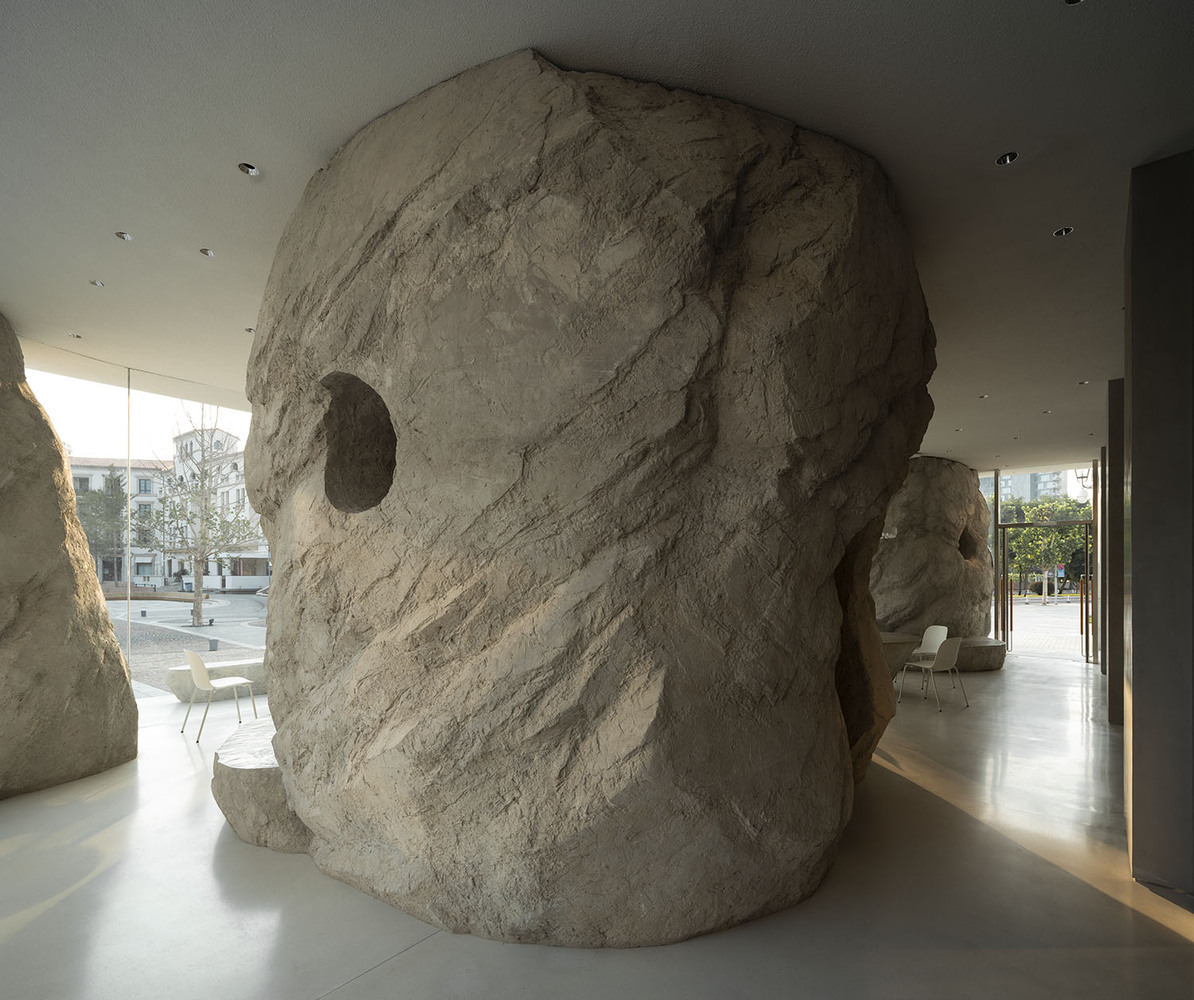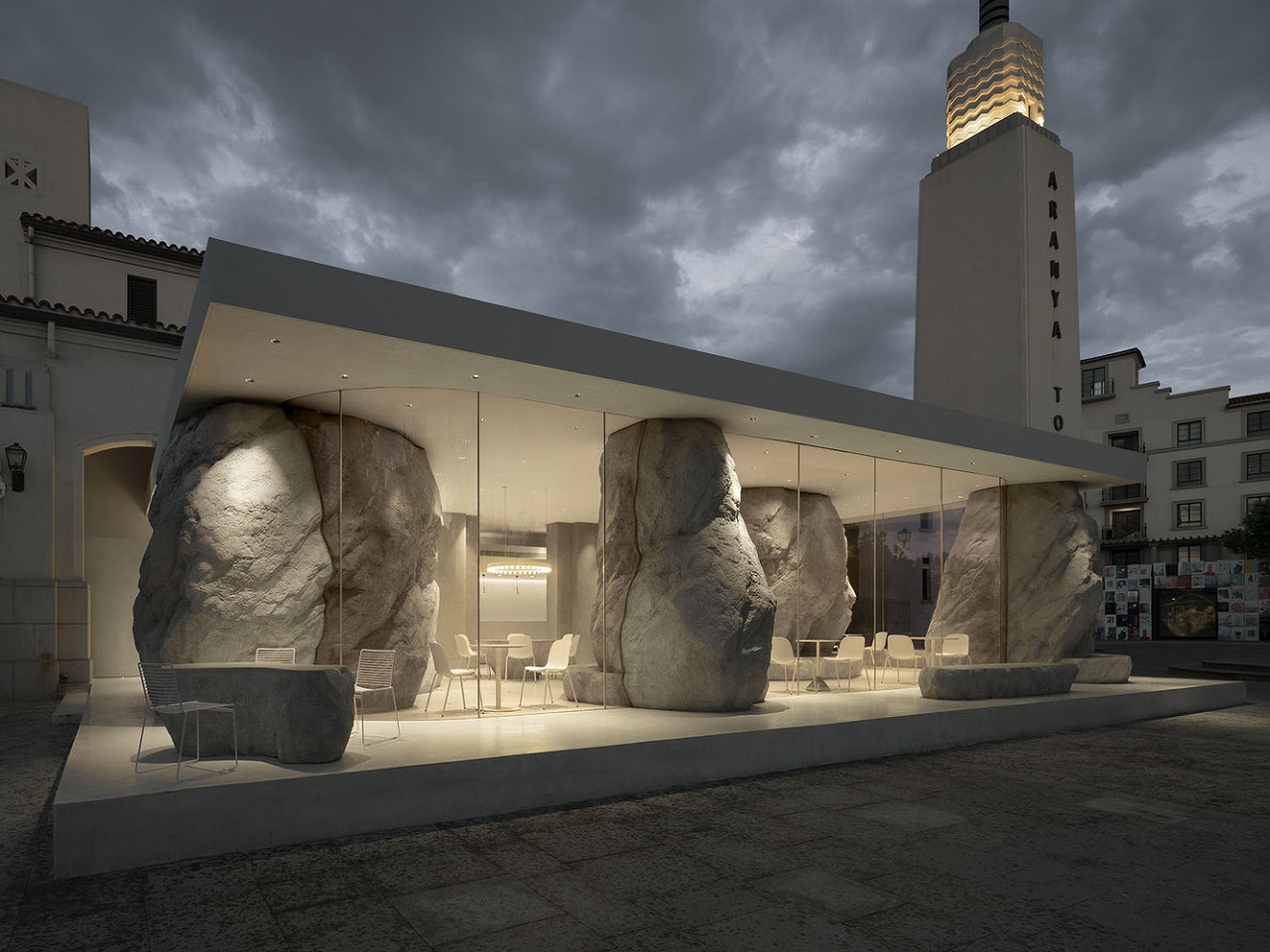 건축이 감성의 가치를 부각시키기 위해 오늘날의 공간은 기능 뿐 아니라 감정과 기억을 담는 그릇의 역할이 필요하다. 카페 앞 탁 트인 작은 광장은 사람들이 지나다니며 자연의 형태를 직접적으로 경험하게 한다. 건물의 세면이 커튼월로 되어 최대한 투명한 방식을 고수하고 지면과 지붕사이에 돌이 끼여진 형태를 하여 조각 전시장을 연상케 한다. 유리의 가벼움과 투명성과 돌의 거친 질감과 크기에 의한 무게감이 유리와 시각적인 대비를 이루고 있고, 빛에 의해 돌이 만들어 내는 다양한 질감의 그림자가 역정성을 만들어 내기도 한다. 바위와 일체화된 좌석, 바위 속동굴의 개인 휴게실 등 바위를 활용한 다양한 좌석공간도 형태와 기능이 결합되어 있다.