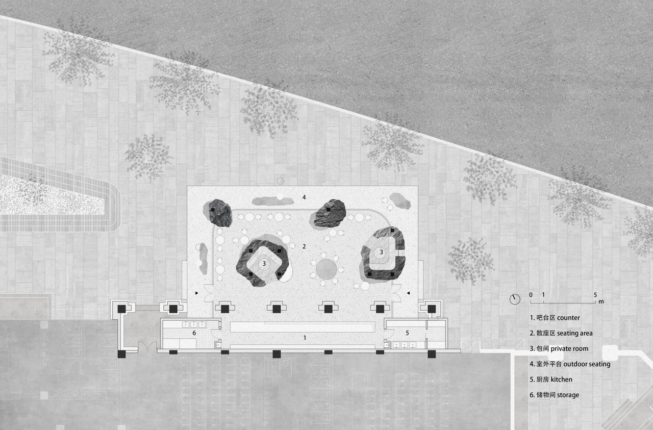 Text description provided by the architects. The project is the new store of the new-Chinese-style dessert brand “Zolaism” in Aranya, Qinhuangdao, one of the most popular seaside resort communities sitting 3-4 hours drive from the central city of Beijing. Located in the plaza of the community, the site is an addition attached to the north side of the original building of cinema, facing the main road and featuring a wide field of view. The philosophy of the brand derives from the natural beauty of mountains and seas. Because of the brand concept and the humanistic atmosphere of the community by the sea, we drew inspiration from nature while respecting the spirit of the site and continuing the brand spirit.