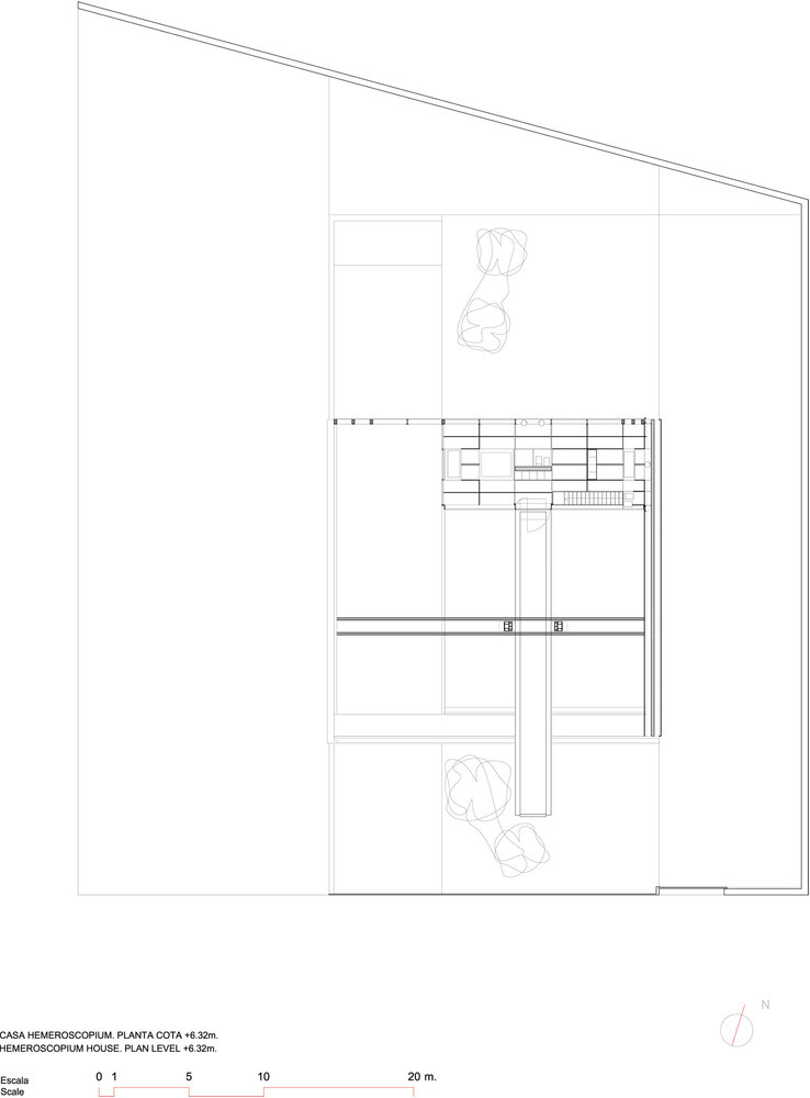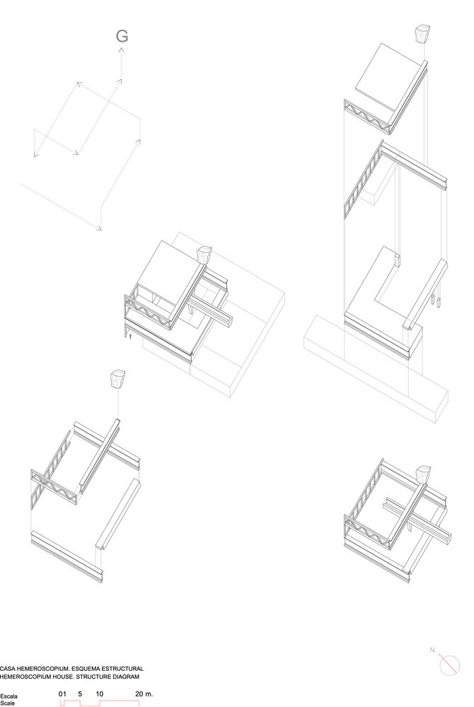 Text description provided by the architects. For the Greek, Hemeroscopium is the place where the sun sets. An allusion to a place that exists only in our mind, in our senses, that is ever-changing and mutable, but is nonetheless real. It is delimited by the references of the horizon, by the physical limits, defined by light, and it happens in time. Hemeroscopium house traps, a domestic space, and a distant horizon. And it does so playing a game with structures placed in an apparently unstable balance, that enclose the living spaces allowing the vision to escape. With heavy structures and big actions, disposed in a way to provoke gravity to move the space. And this way it defines the place.