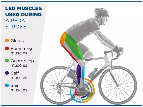 사이클링에 사용되는 주요 근육이 다리와 엉덩이에 있다는 것은 놀라운 일이 아닙니다. 사이클링에는 다음 근육이 사용된다. (위 사진과 비교)