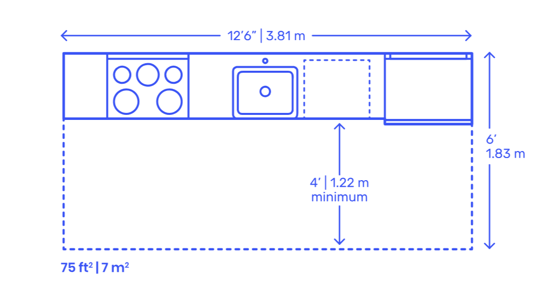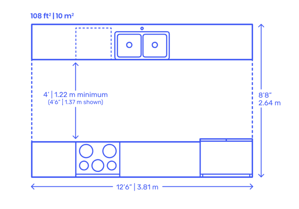 마주보는 두 벽면에 작업대를 배치하고 양쪽 벽면을 모두 수납공간으로 활용해 좁은 면적을 경제적으로 효율적으로 쓸 수 있다. 통로의 폭은 0.9~1.5m 정도가 적당하며 몸을 앞뒤로 바꾸면서 작업해야 해서 작업대 사이의 공간이 다른 곳을 오가는 통로로 쓰일 수 있는 단점이 있다.