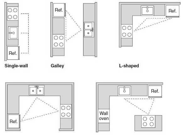 주방공간의 6가지의 배치유형과 특징을 살펴본다.
