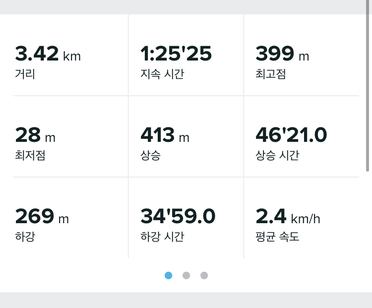 3.42km 정도 거리이며, 소요시간은 약 1시간 25분(휴식시간포함)