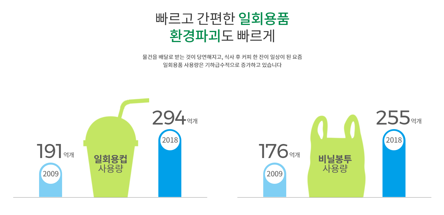 2) 빠르고 간편한 일회용품 환경파괴도 빠르게