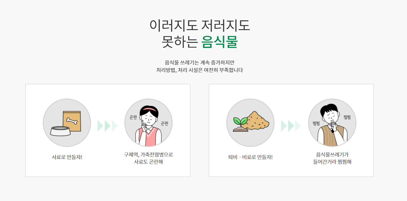 5) 넘쳐나는 음식물쓰레기1인 가구 증가, 외식문화 확산 등 사회 구조 변화에 따라 음식물 발생량이 증가하고 있다.