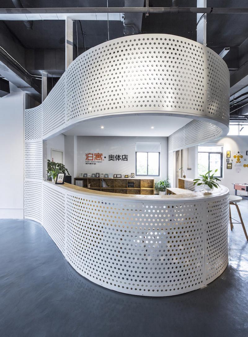 It is public area for a youth apartment in Fuzhou, we demolished the original partition wall and inserted a continuous translucent curve wall inside. The semi-enclosed wall divides the area into two parts, an the curve creates several pocket-type space in both sides. The project is located in a youth commune in Fuzhou, with a area of 480 square meters, used as the public area of the youth apartment above. The client requires to design a space which can facilitate the daily activities of management, guest, reading, working, salon, and fitness for the residents.