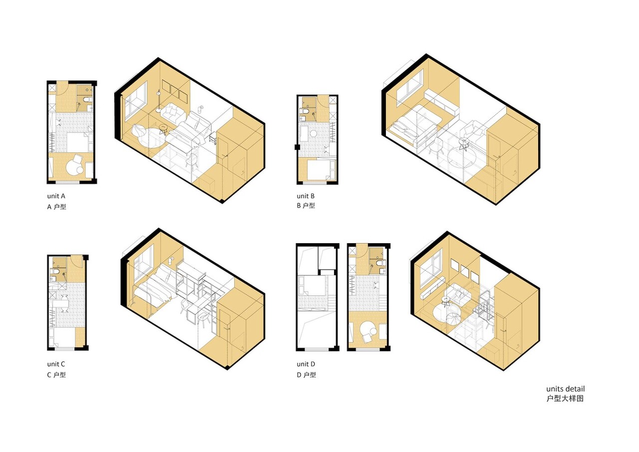 Text description provided by the architects. Yantai Chunhui road is located in Laishan District, a place originally surrounded by educational institutions and former light-industries, there are some universities around such as Yantai University, Shandong Technology and Business University. The recent urbanization has made this area gradually become the heart of Laishan District, with most of factories moving away, leaving many vacant industrial buildings and warehouses. This project is right at the regenerating former industrial area, there were three buildings originally on the site, and the design mission was to transform the industrial space into a sharing living community for young people.