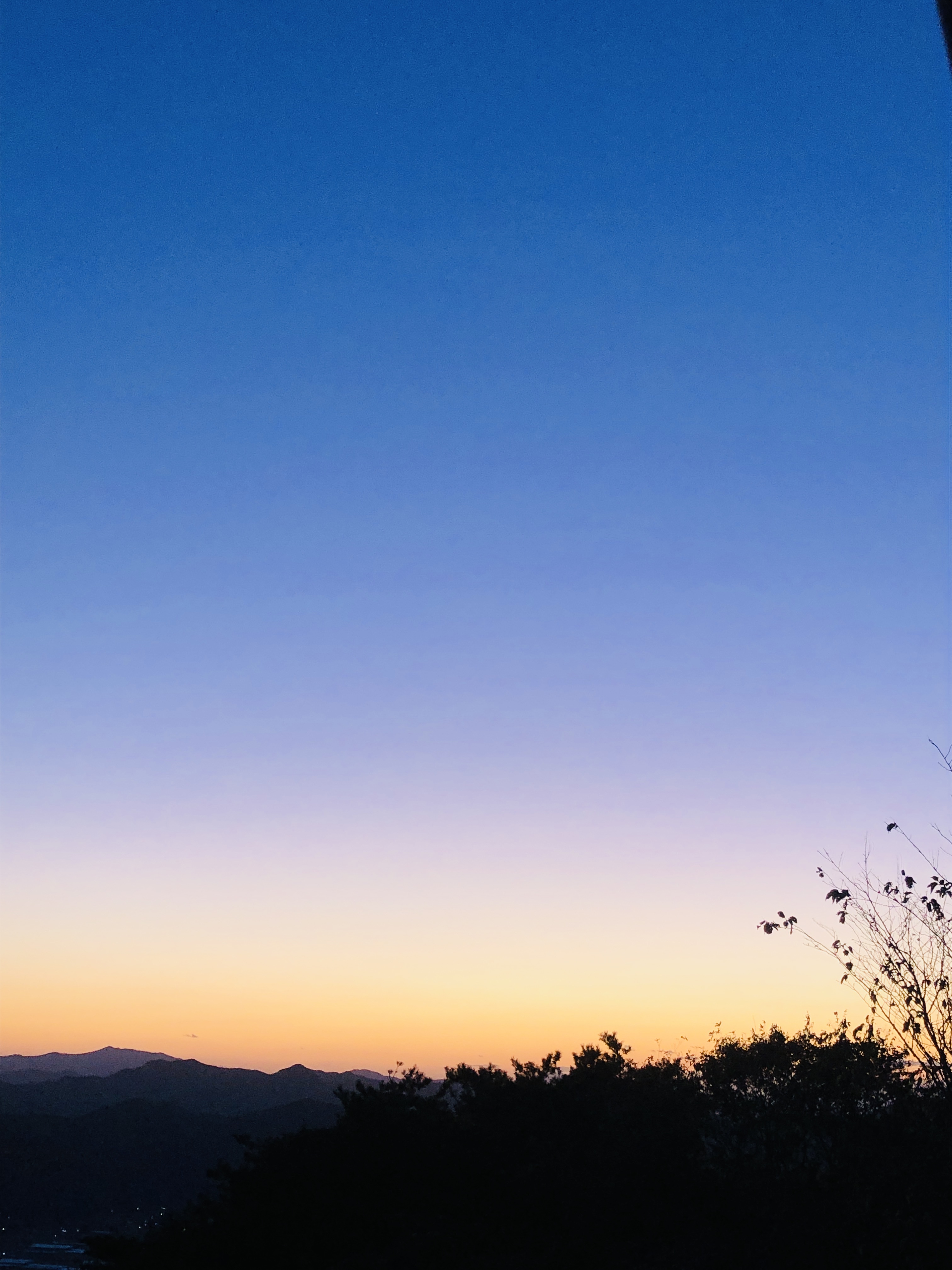 이 시간 때에 고요함과 선명함으로 인해 많은 것을 잊고, 오직 지금에 익숙해진다. 좌우를 두리번거리며 감탄만을 자아내어 사진으로 다 담을 수 없어 누구와도 공유하기 힘든 지금이 안타깝기는 하지만, 오로지 나에게 집중할 수 있다. 눈과 가슴으로만 담을 수 있는 지금의 선명함을 깊이 기억하고 싶다. 일몰의 지는 해의 모습 보다도 지면서 비추는 깊고 낮은 햇살이 보통 때보다 사물을 더 짙게 보여주고, 더 깊고 선명하게 보여진다. 그리고 고요함과 적막함이 그 깊이를 계속 살피게 만든다. 점점 어둠이 찾아온다.