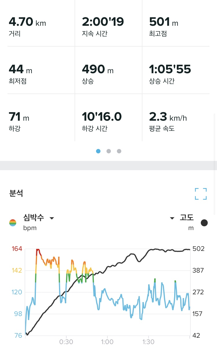 - 상승시간은 전체시간에 절반 정도로 어렵지 않은 코스
