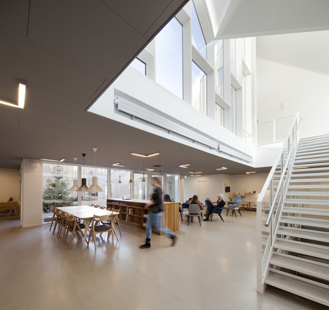 암환자라고 하는 낙인 없는 상징적인 건물의 형태이며 덴마크의 전통적인 주거지와 유사한 일련의 작은 주택의 모습으로 나타났다. 안뜰은 도시 내에 평온한 공간을 만들고, 콘크리트, 목재, 알루미늄 등 풍부한 시각적, 촉각적 효과와 더불어 평온한 공간을 만들어 낸다.