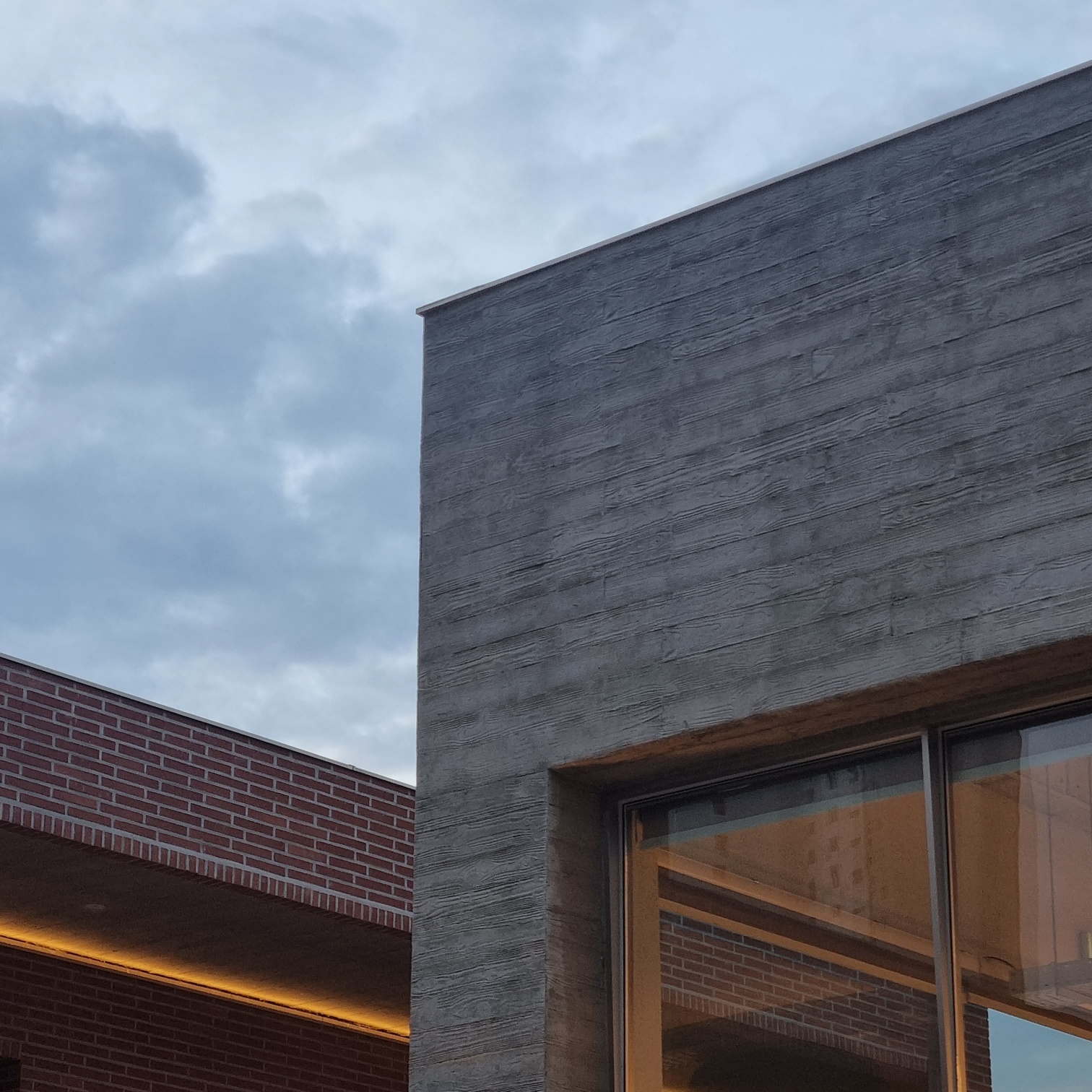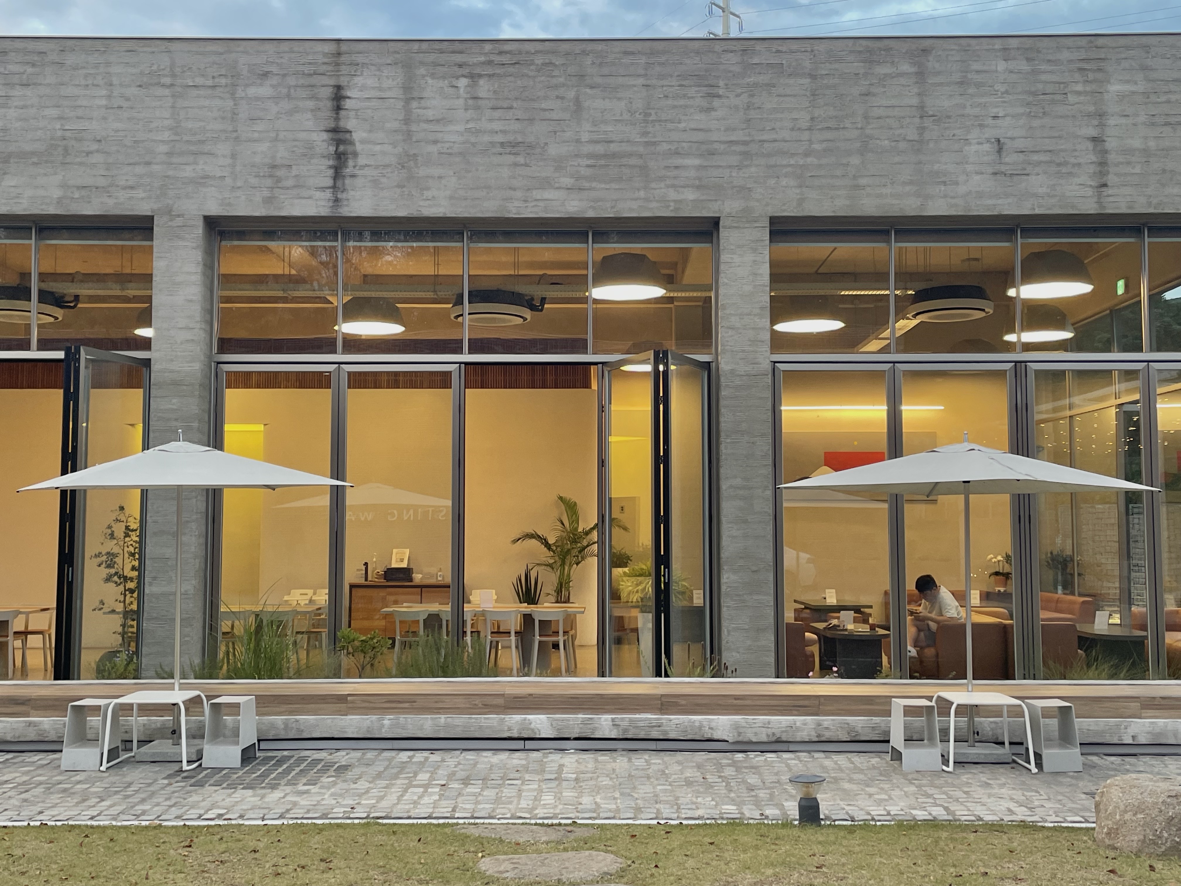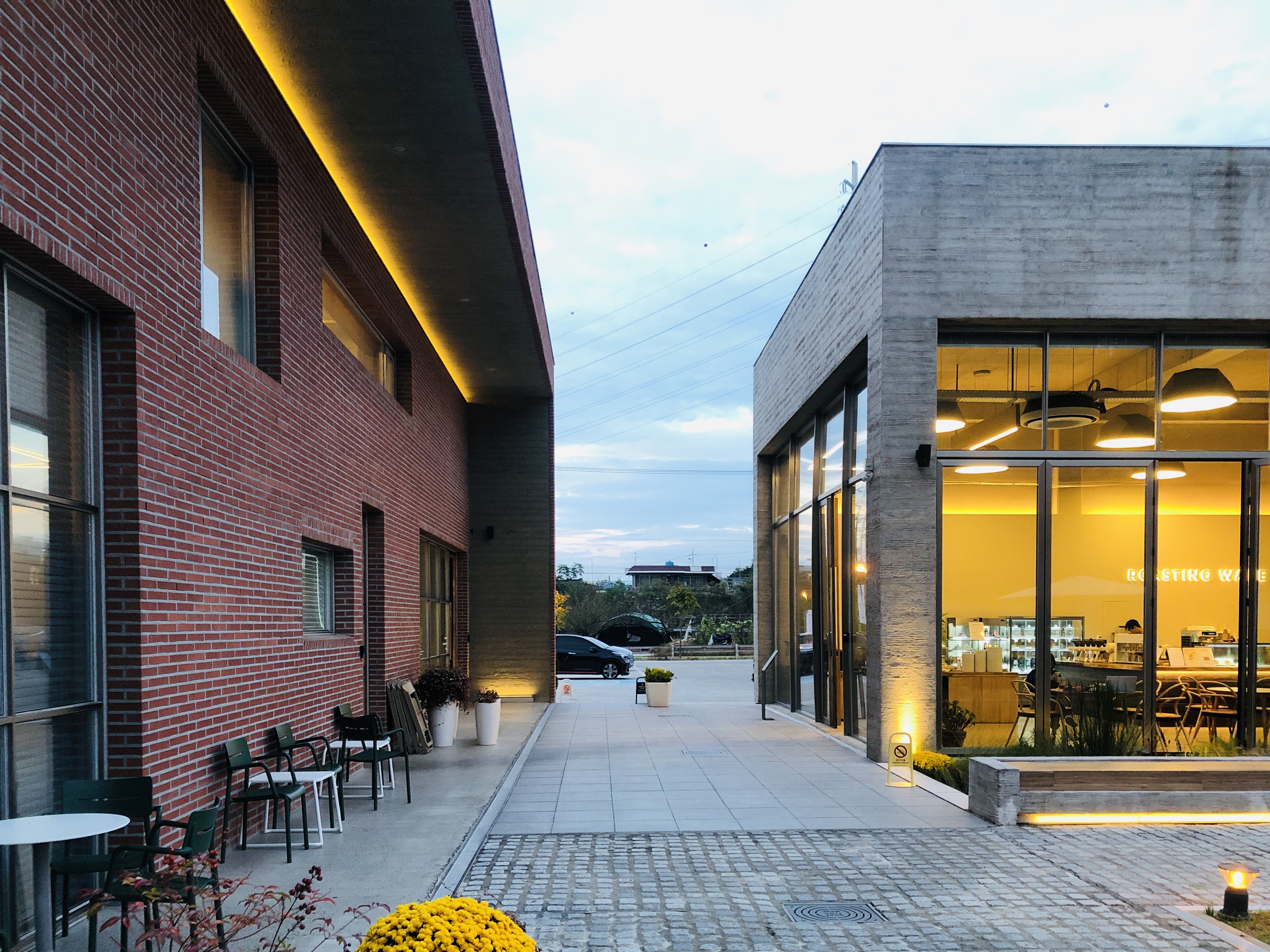 2개층 높이의 단층 건물 2개의 동으로 나눠져 있다. 노출코크리트 마감으로 된 카페매장 건물과 벽돌외벽마감으로 된 사무실로 나눠져 있다. 카페매장과 사무실(공장) 사이는 ㄷ자형의 중정형 건물로 야외테이블이 곳곳에 놓여 있다. 외관에서 느껴지는 단순함은 절제된 형태와 공간을 구현하려고 한 것 같다. 지붕의 형태도 평지붕이며, 외벽 재료는 노출콘크리트와 벽돌의 재료로 다소 차분하고 중정을 안고 있는 기분이 든다.